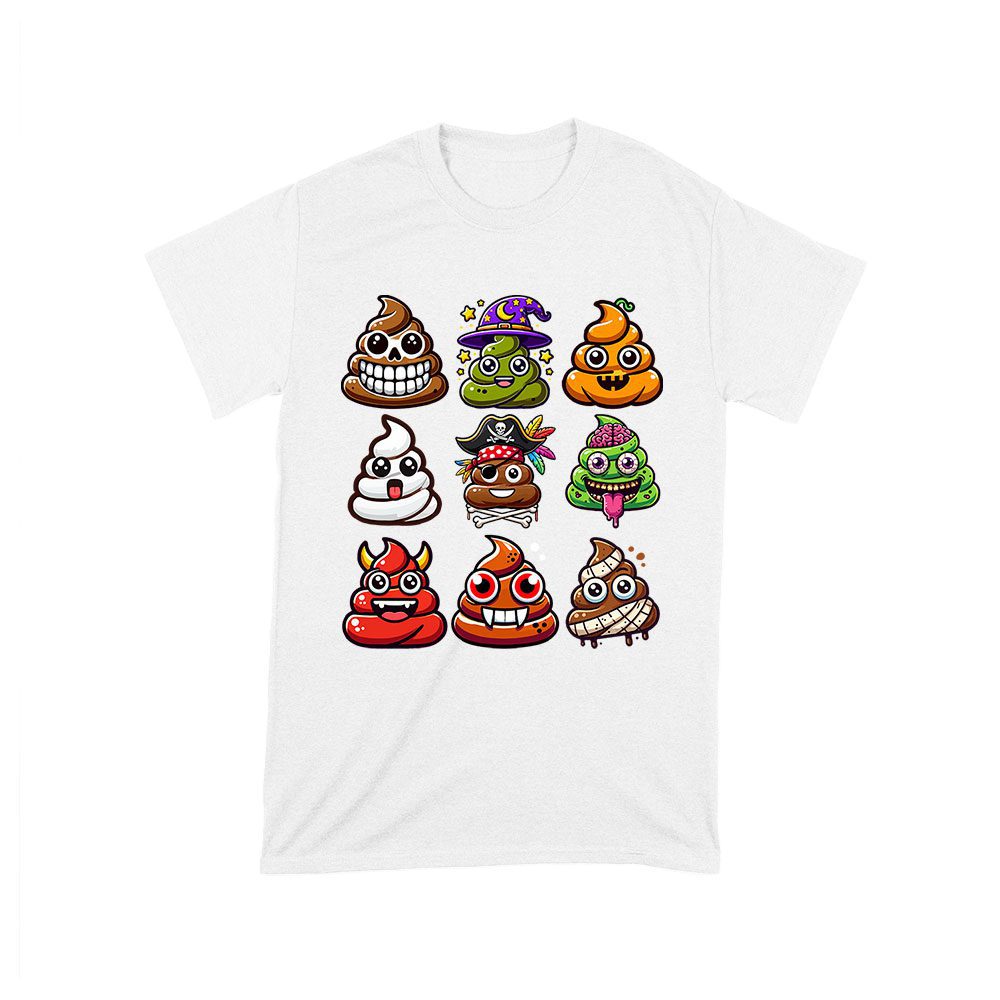 Halloween t-shirt, poop faces shirt, funny Halloween tee, spooky characters, cute Halloween shirt, novelty t-shirt, silly Halloween design, colorful Halloween tee, humorous shirt, spooky season shirt: