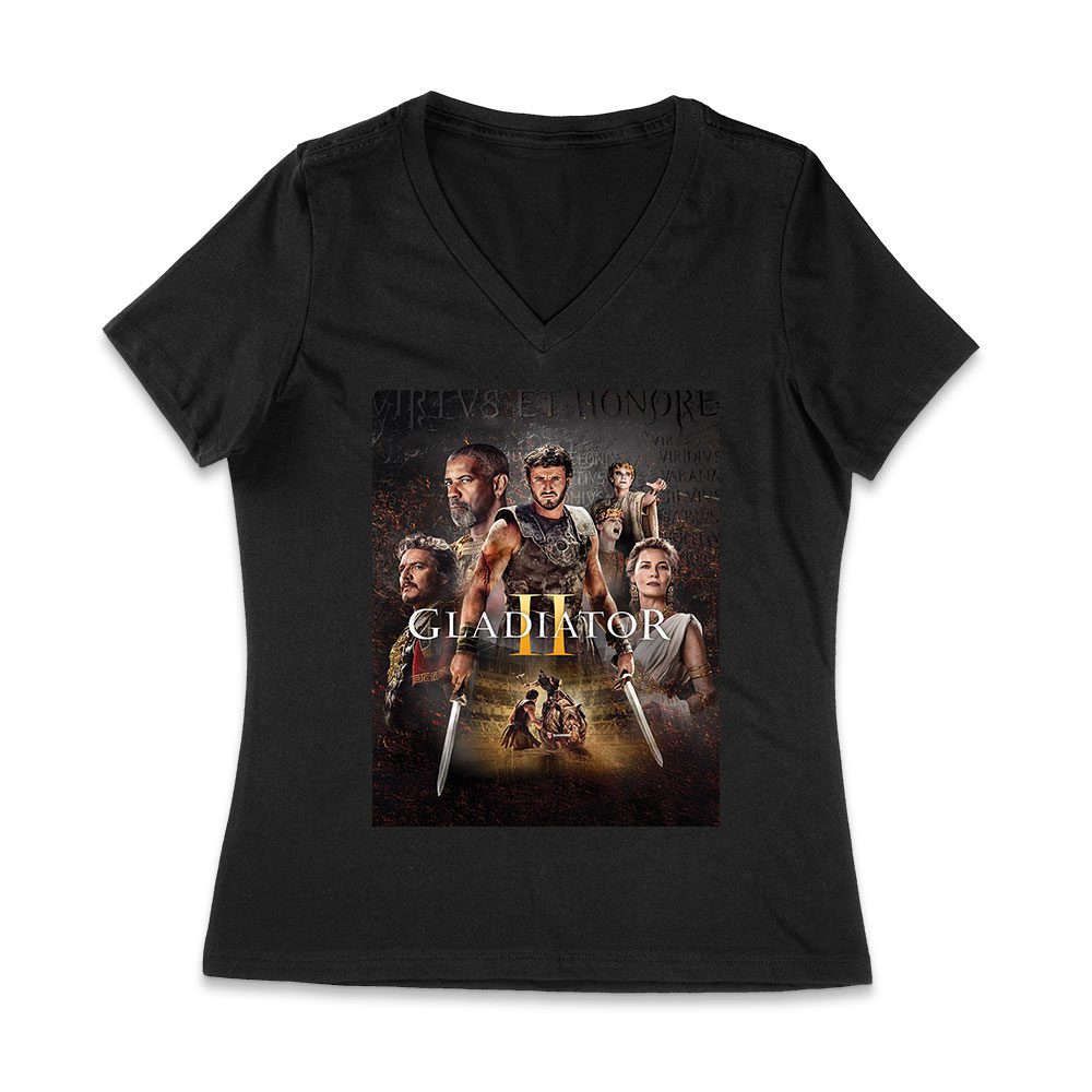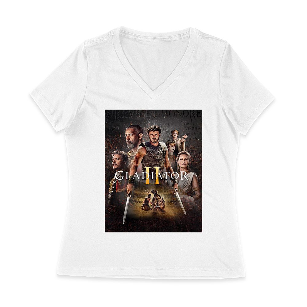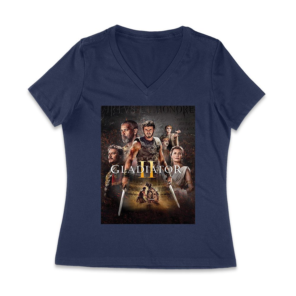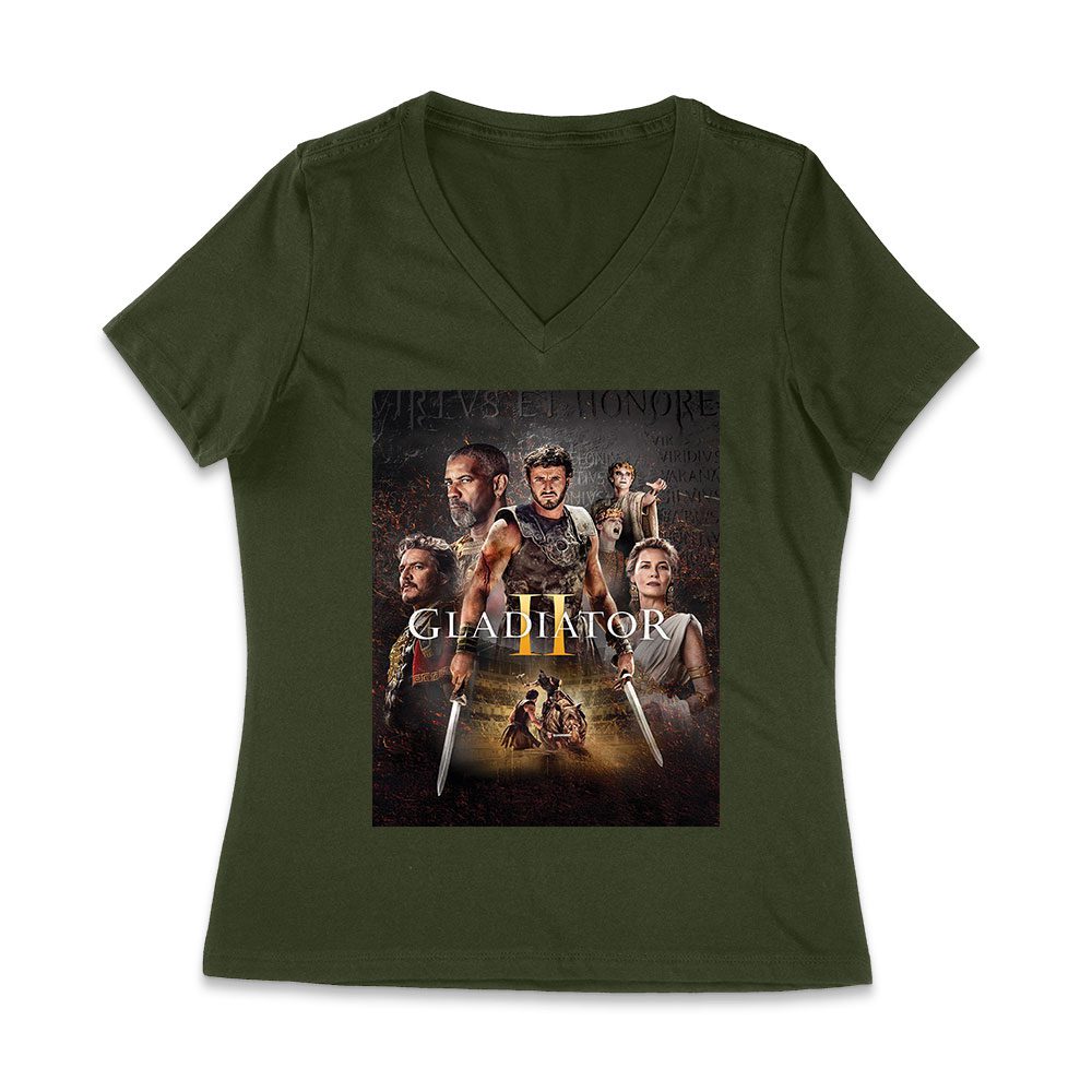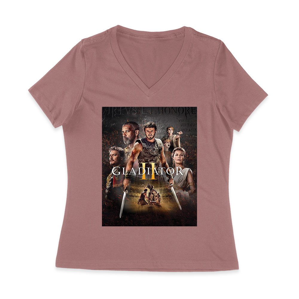 Gladiator II – Fearless Warrior T-Shirt – Bold Battle Armor for Fighters and History Lovers Women Jersey V-Neck