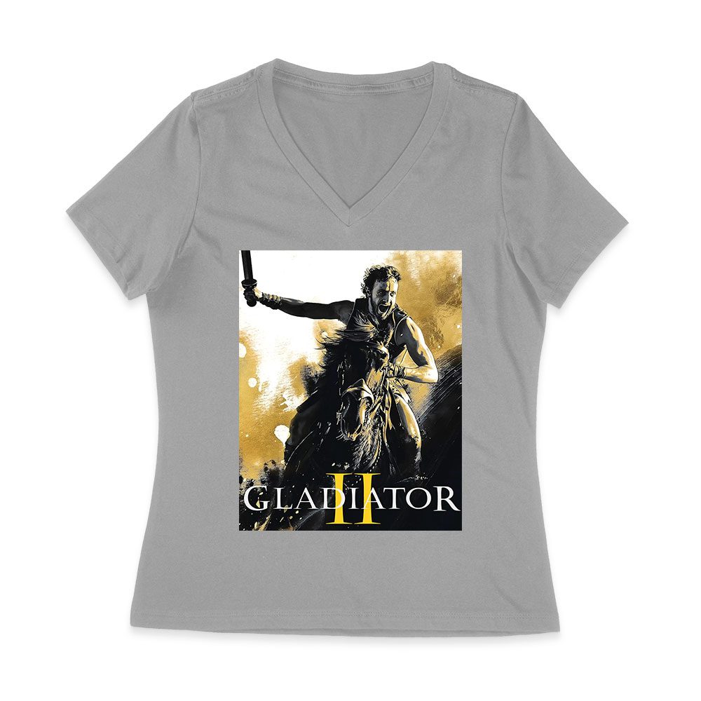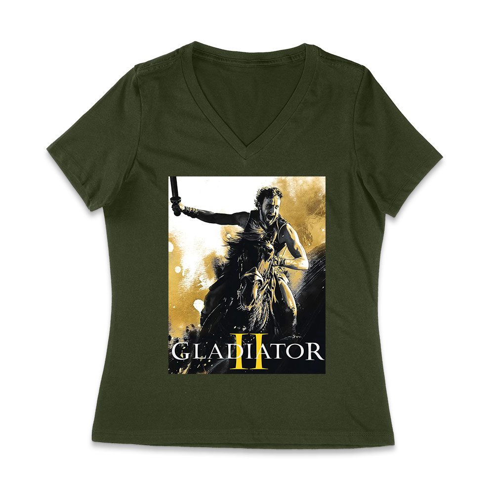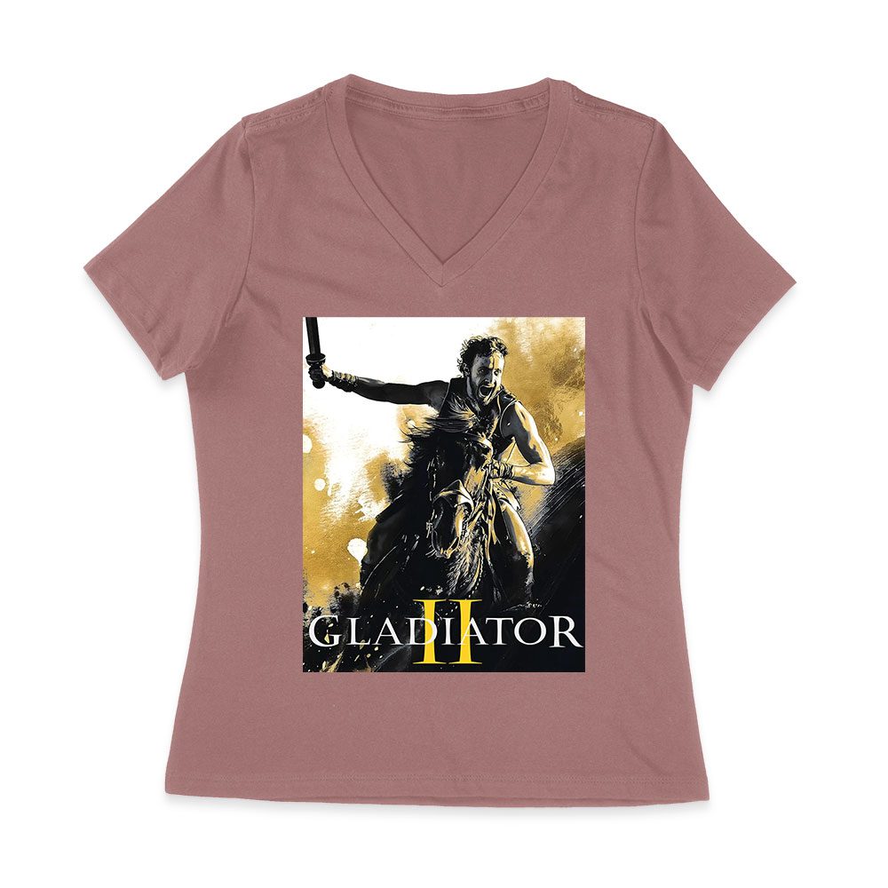 Gladiator II – Paul Riding on a Horse T-Shirt – Epic Warrior Battle Design for Brave Fighters Women Jersey V-Neck