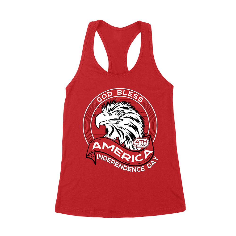 God Bless 4th of July – America Independence Day Eagle Tee Women’s Racerback Tank Top