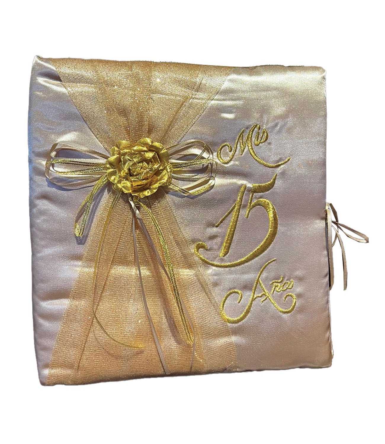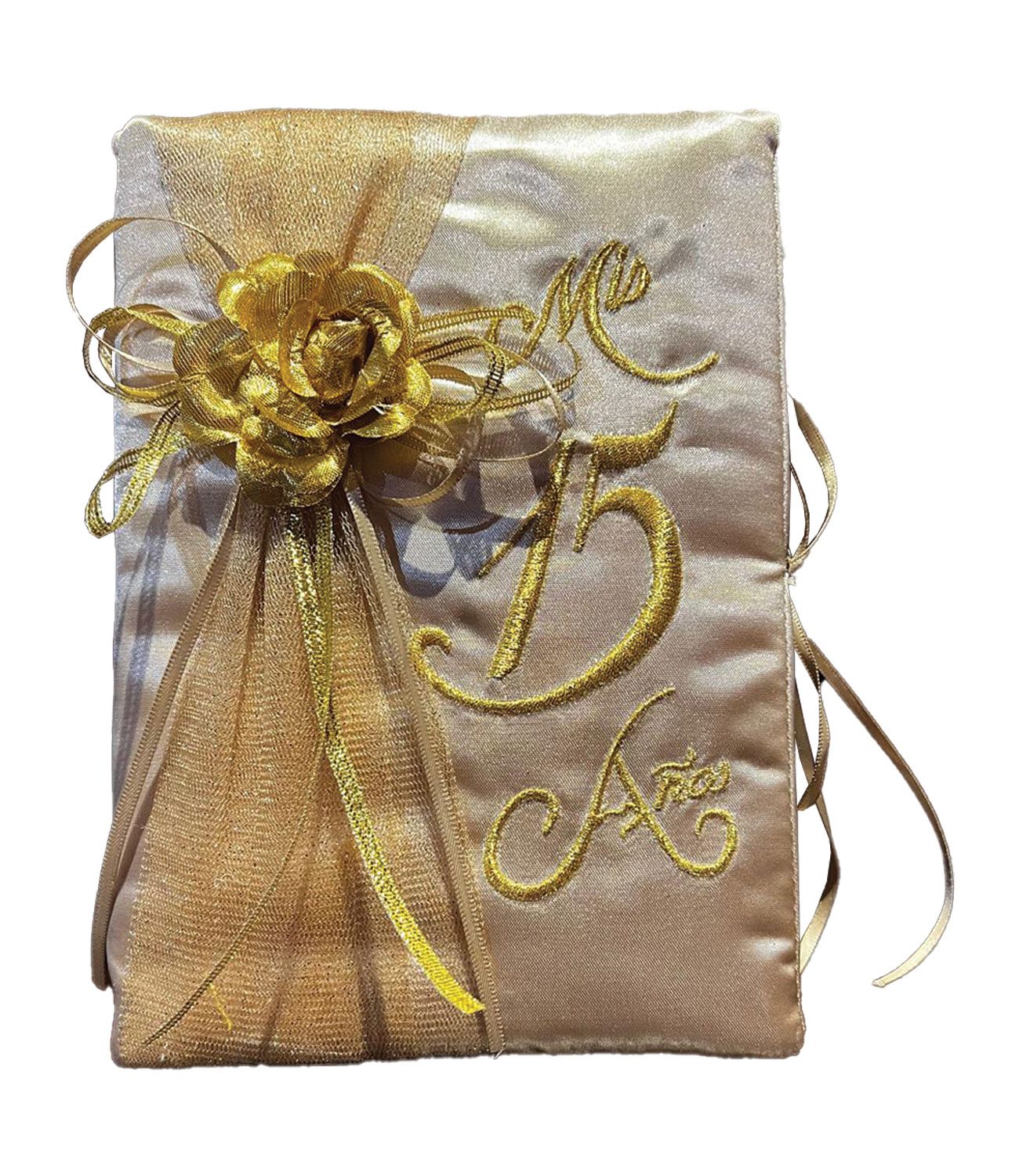 Gold and Gold 5 Piece Quinceanera Set Mis Quince Set with Kneeling Pillow, Tiara Pillow, Guestbook, Photo Album, Spanish Bible, My Sweet 15 Decorations (Copy)