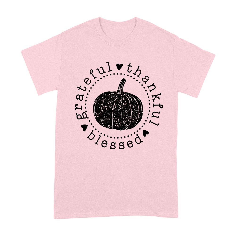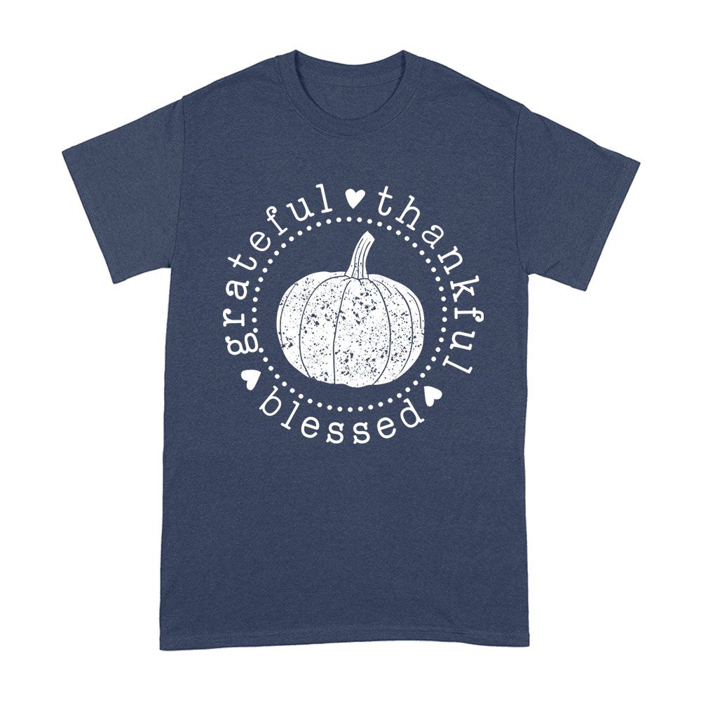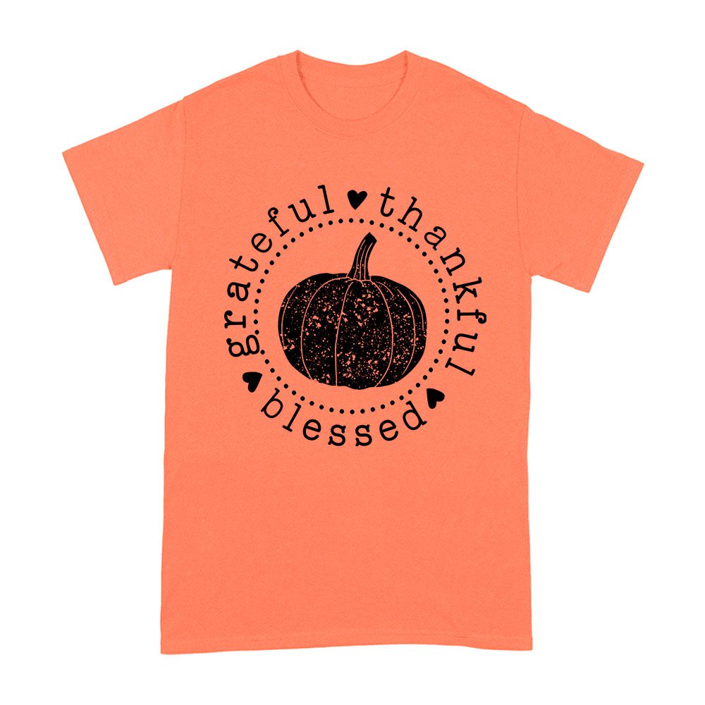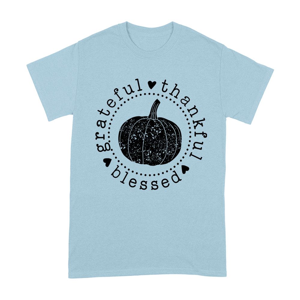 grateful thankful blessed, pumpkin design, Thanksgiving shirt, holiday wear, cozy fit, fall fashion, festive t-shirt, seasonal apparel, unique holiday shirt, autumn vibes, family gathering, Thanksgiving blessings, harvest style: