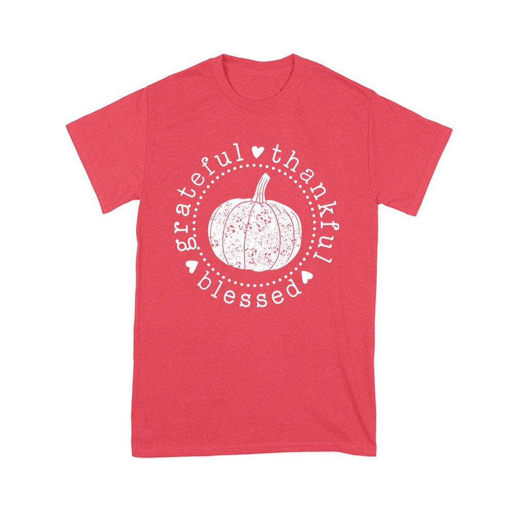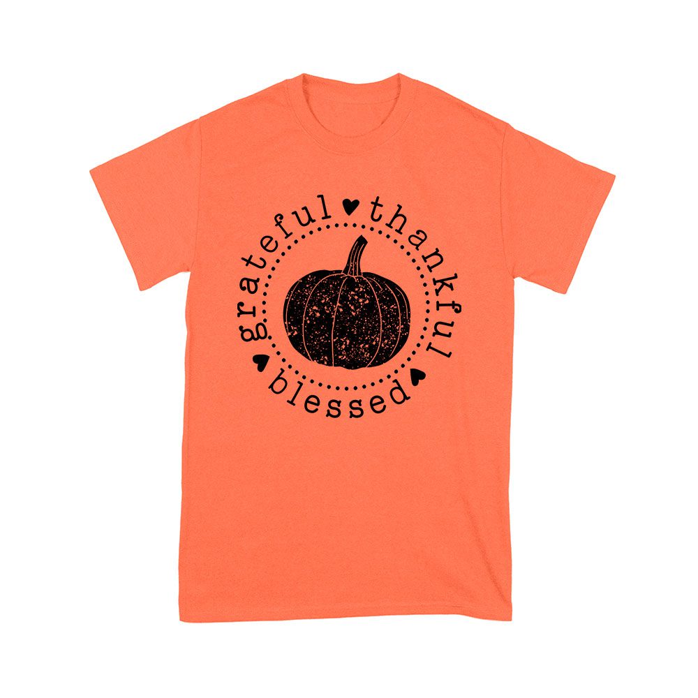 Grateful Thankful Blessed T-Shirt with Pumpkin Design – Perfect Thanksgiving Wear – Celebrate in Style – Cozy and Comfortable Fit
