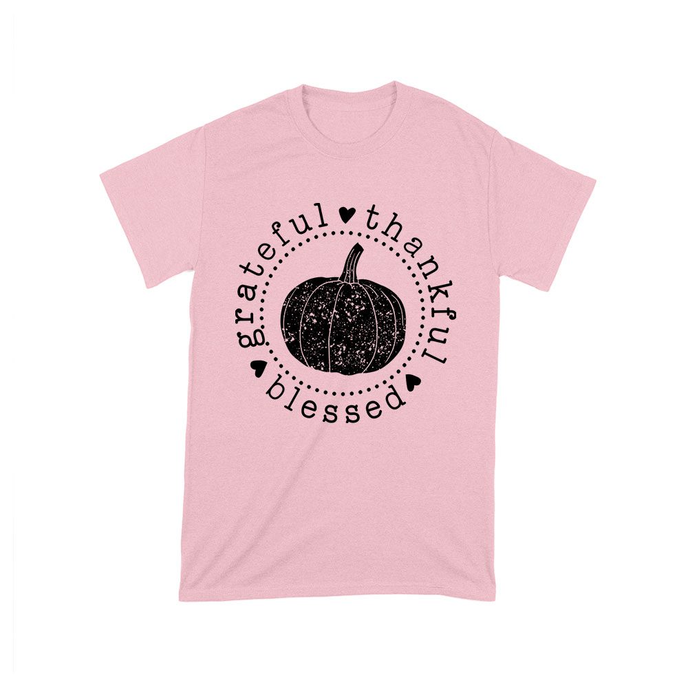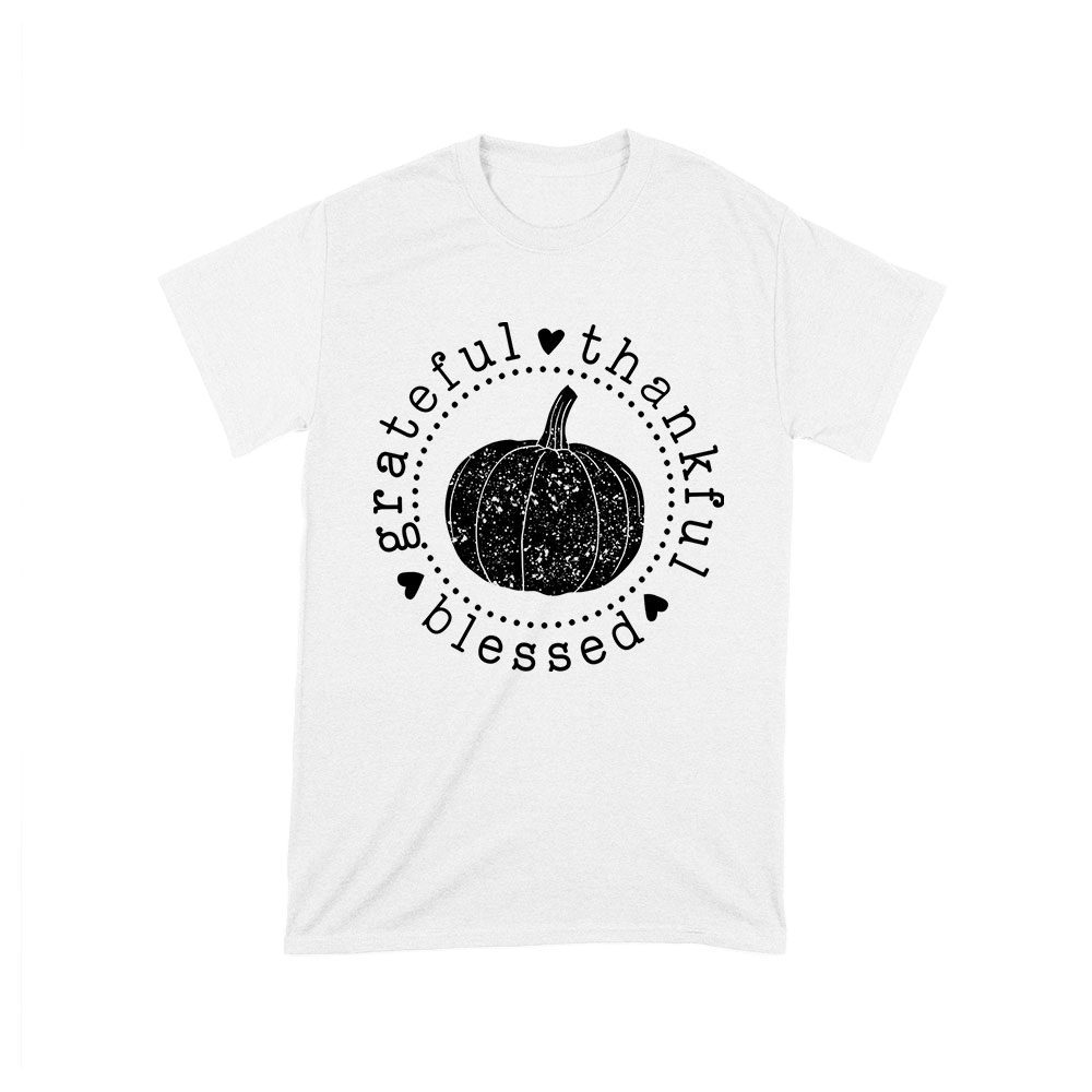 Grateful Thankful Blessed T-Shirt with Pumpkin Design – Perfect Thanksgiving Wear – Celebrate in Style – Cozy and Comfortable Fit