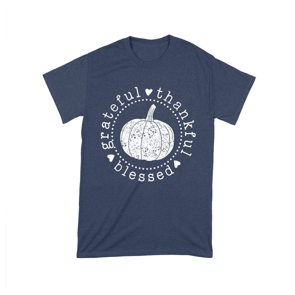 grateful thankful blessed, pumpkin design, Thanksgiving shirt, holiday wear, cozy fit, fall fashion, festive t-shirt, seasonal apparel, unique holiday shirt, autumn vibes, family gathering, Thanksgiving blessings, harvest style: