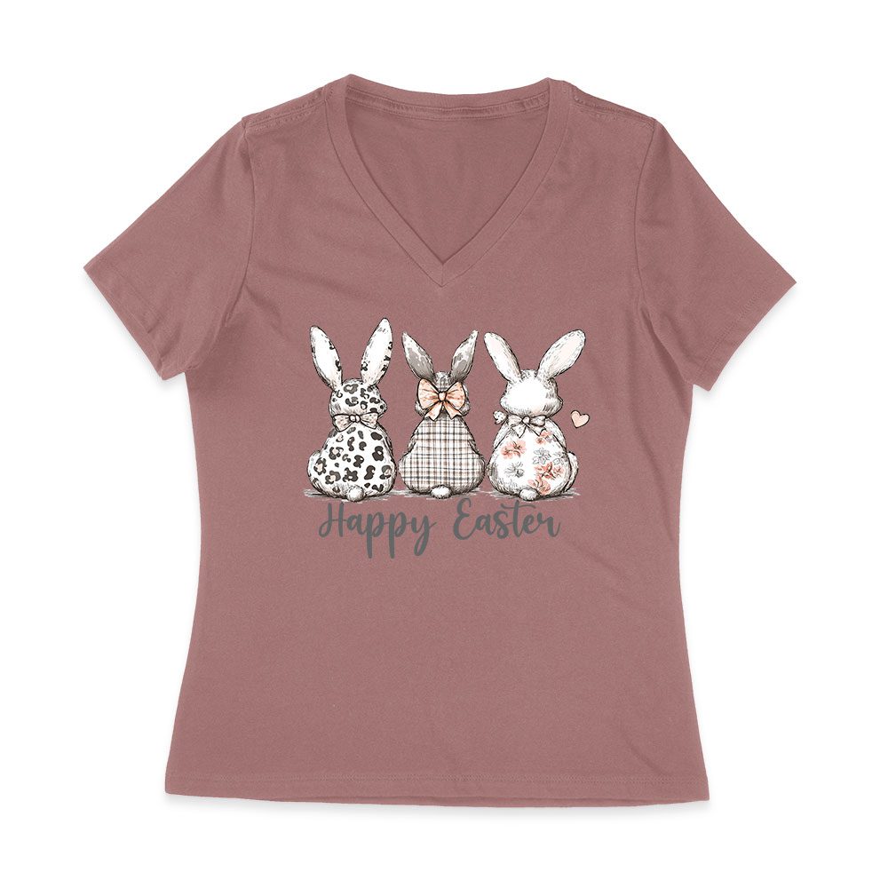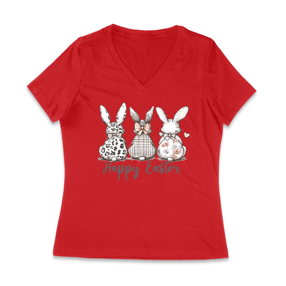 Happy Easter Bunnies T-Shirt – Cute Spring Bunny & Egg Hunting Tee for Easter Lovers Women Jersey V-Neck