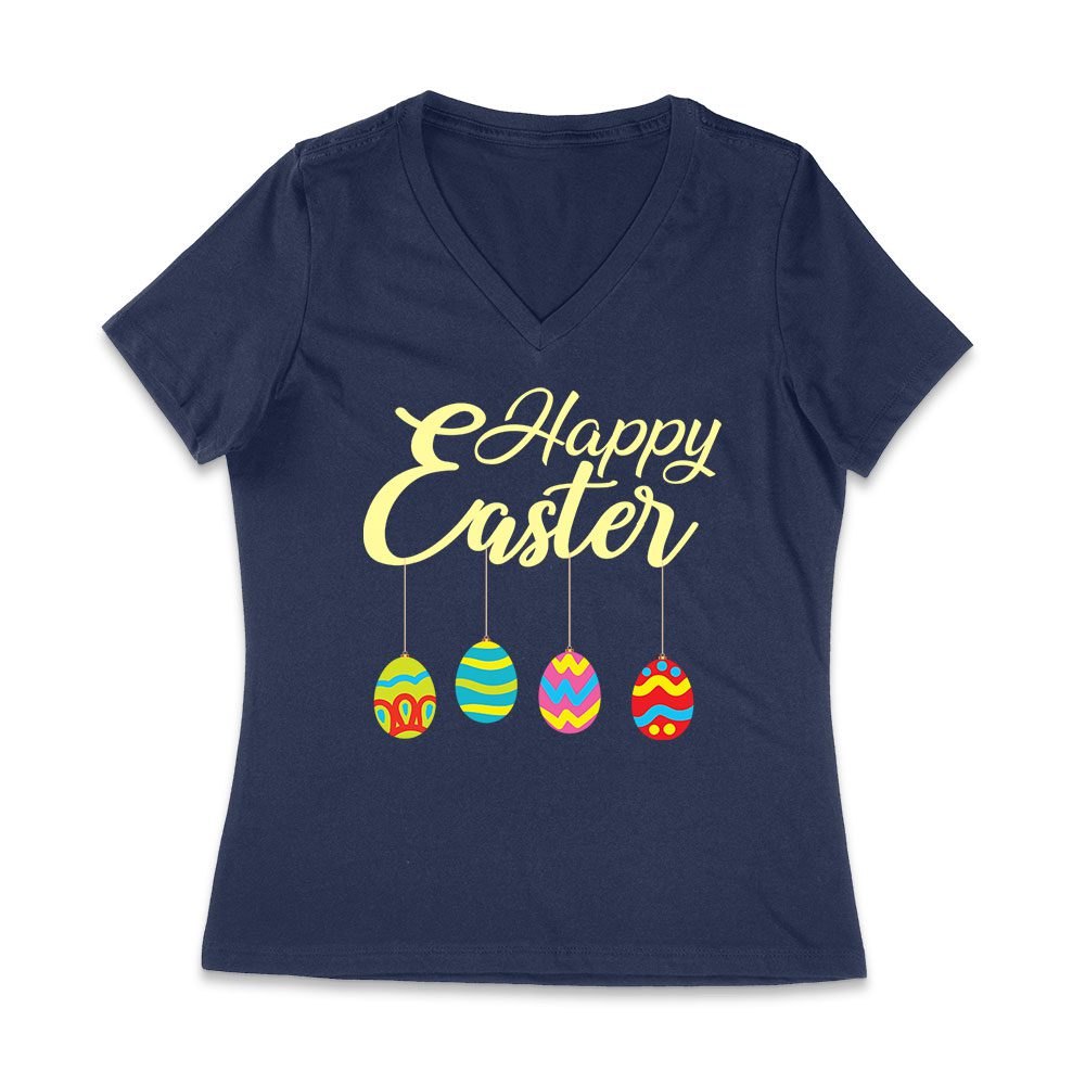 Happy Easter T-Shirt – Fun & Festive Bunny, Egg Hunt & Spring Celebration Outfit for Adults & Kids Women Jersey V-Neck