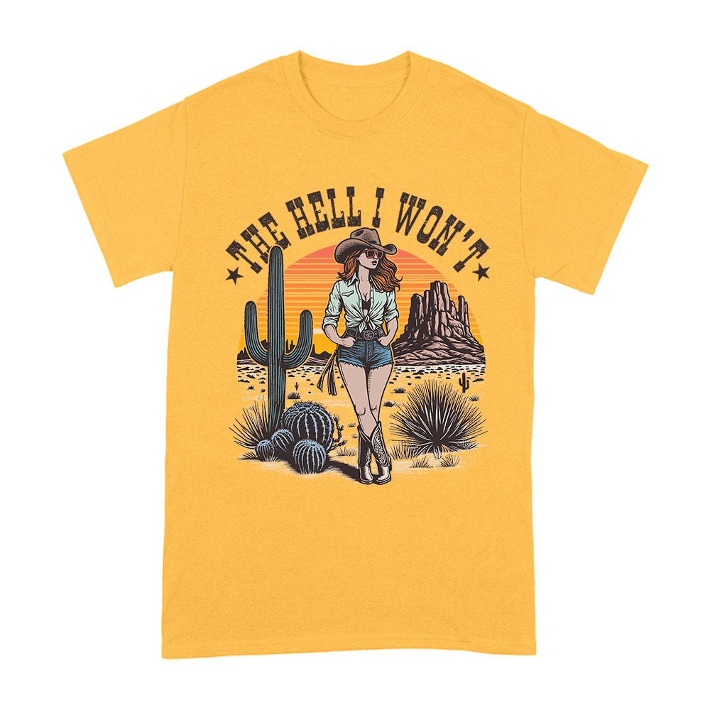 The Hell I Won’t Rodeo T-Shirt – Bold Western Cowboy Graphic Tee – Vintage Country Horse Riding Shirt for Fearless Rodeo Fans & Ranchers