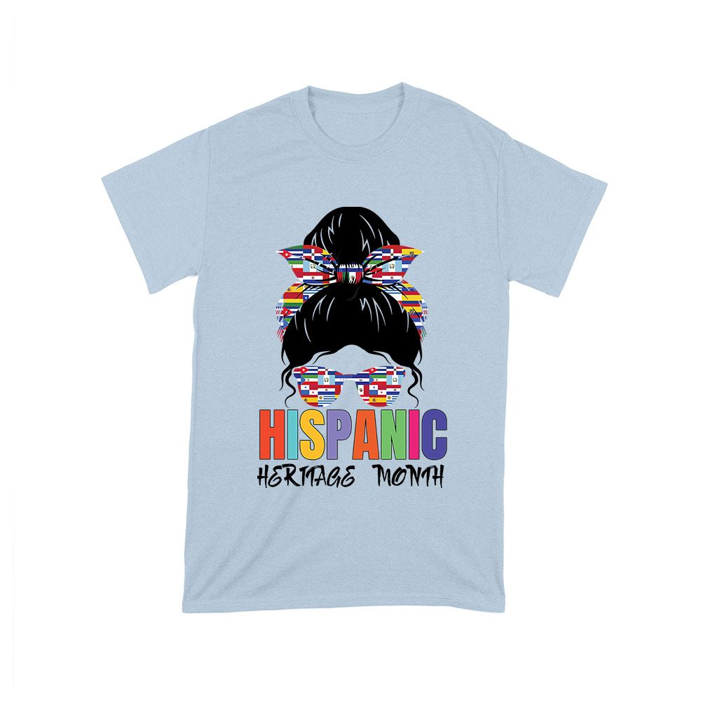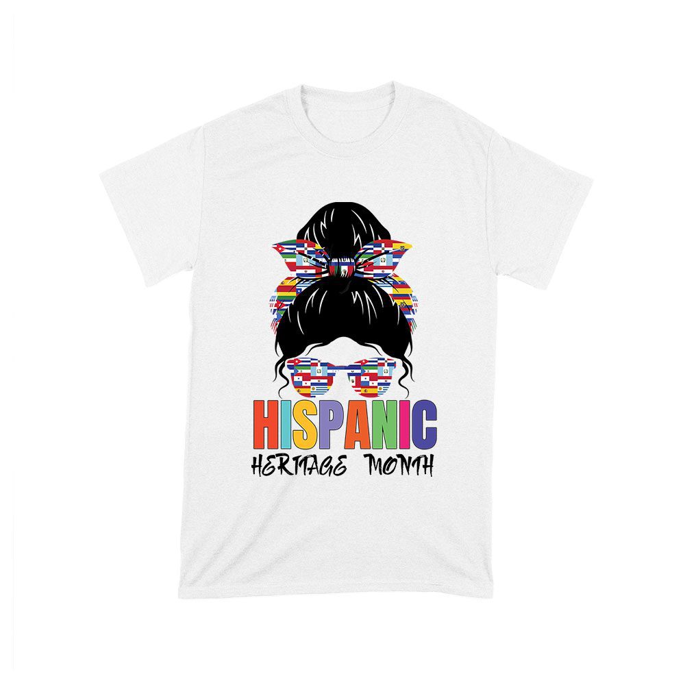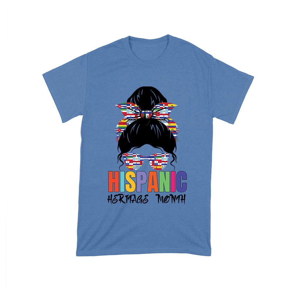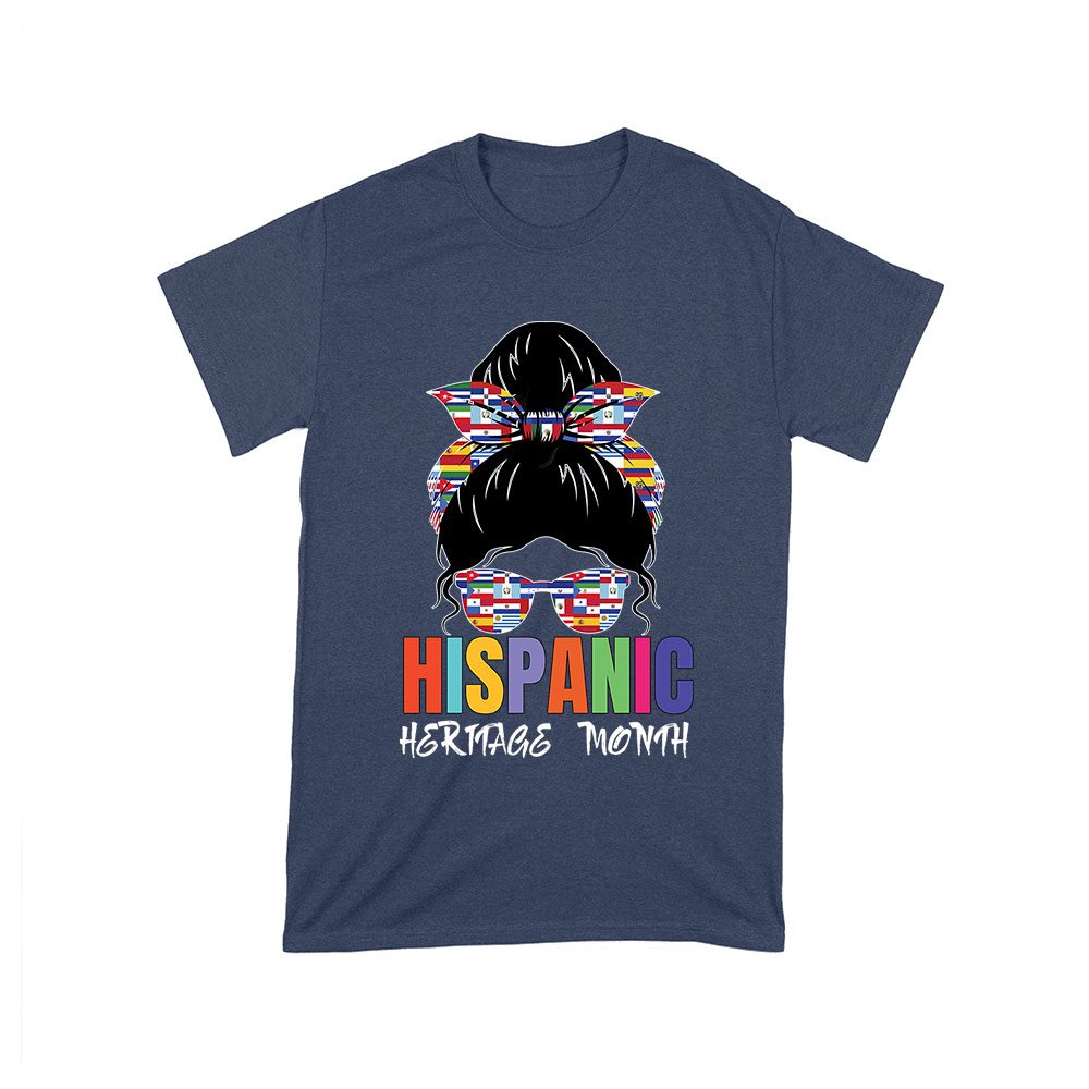 Hispanic Heritage Month Girl Face with Sunglasses & Scarf Featuring Country Flags