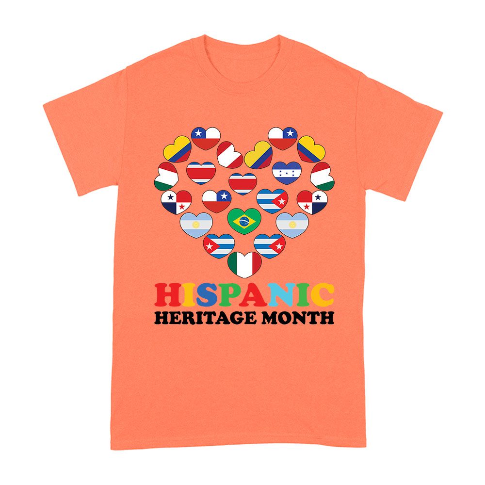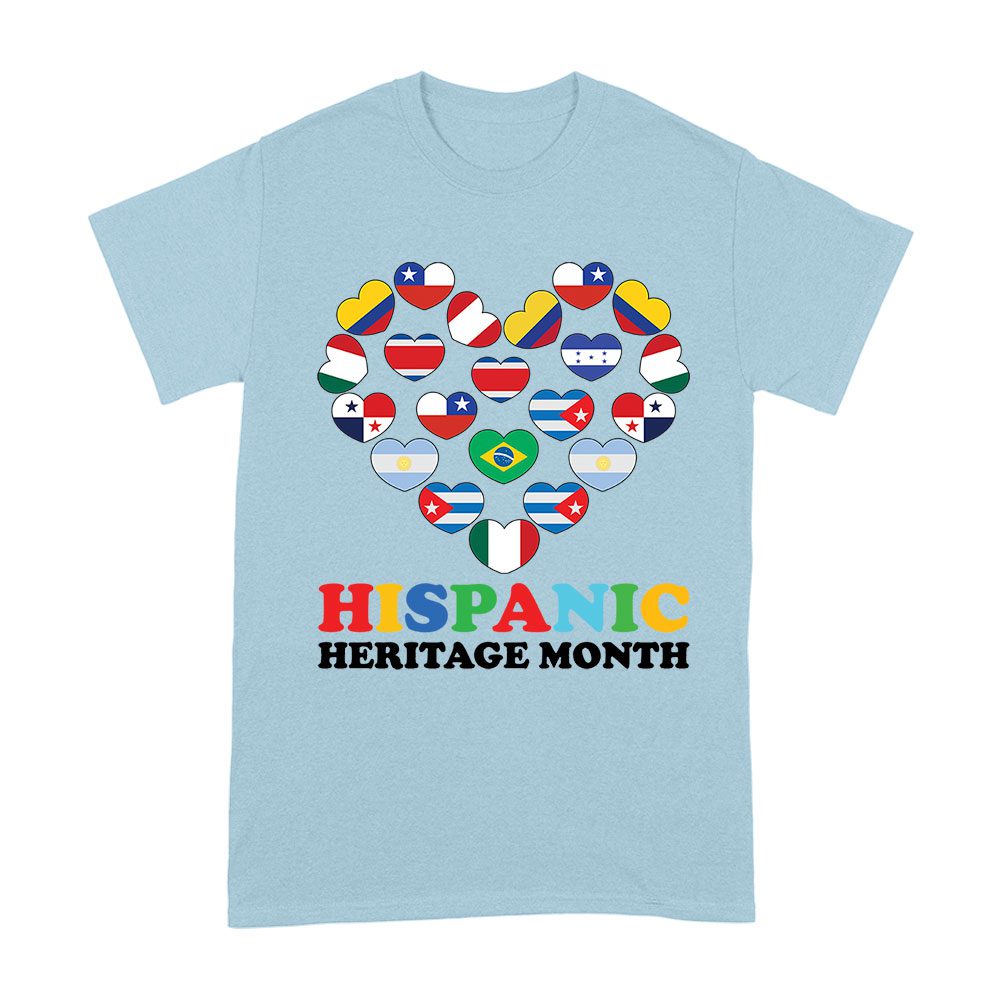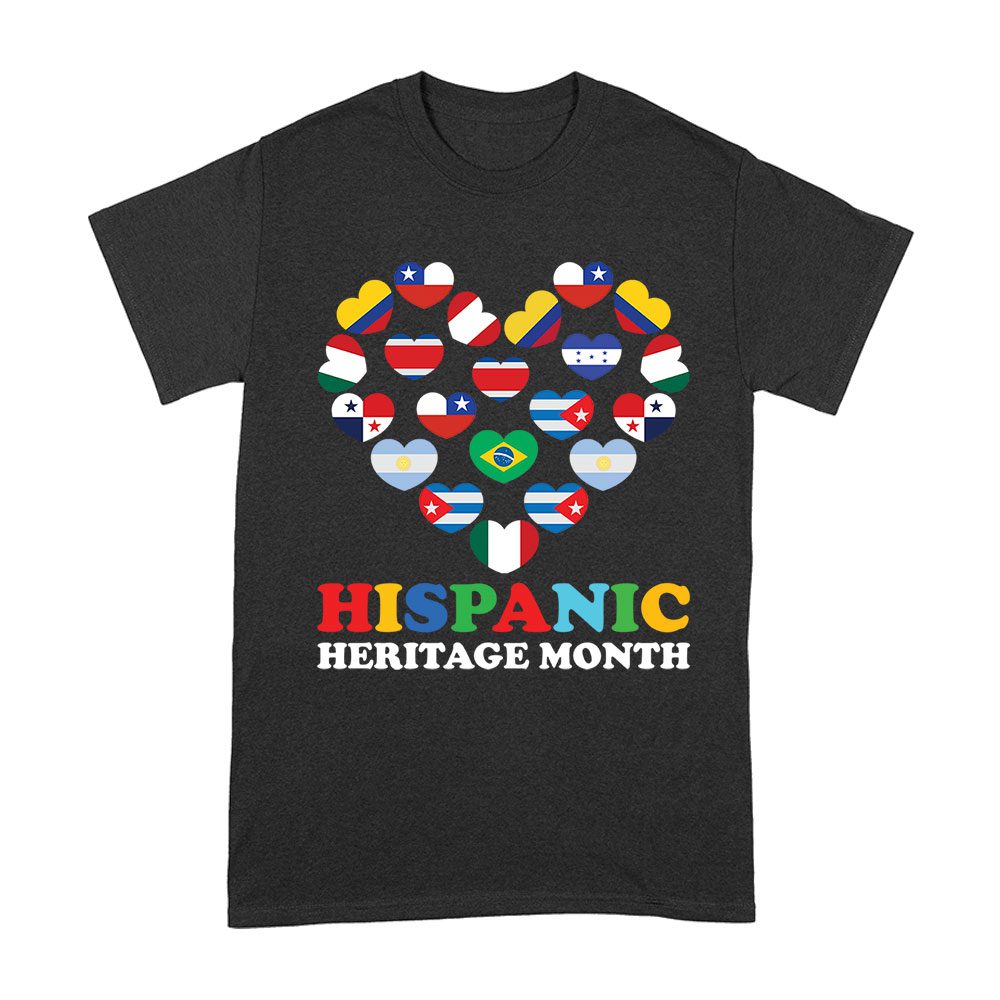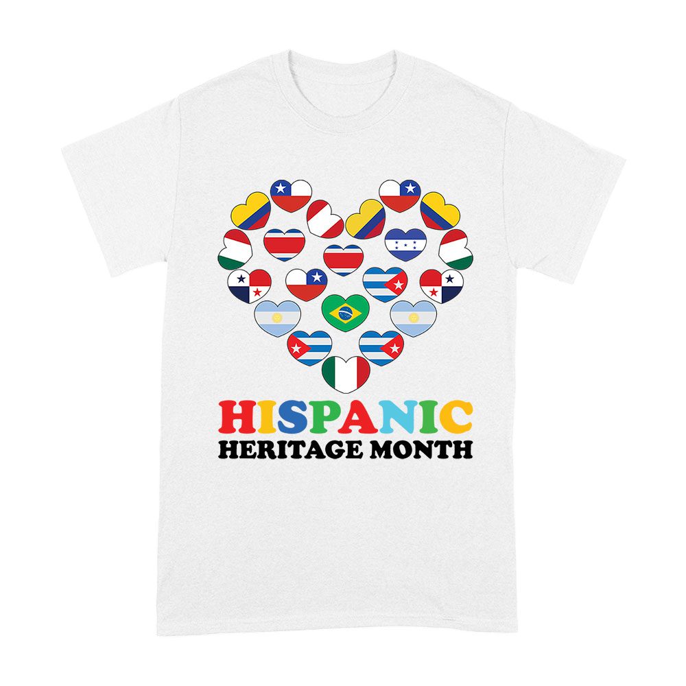 Hispanic Heritage Month T-Shirt – Country Flags in Heart Unity Design