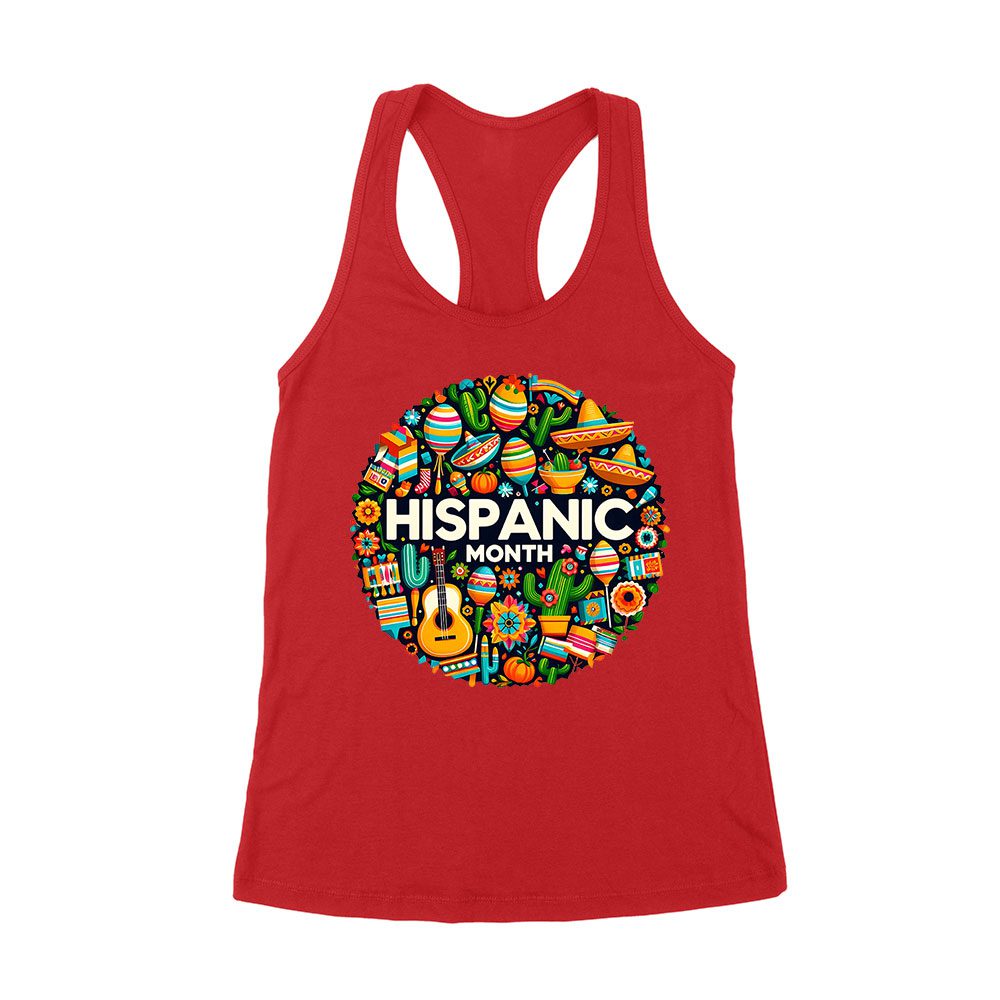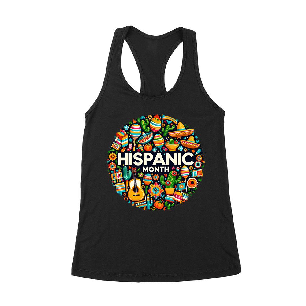 Hispanic Month T-Shirt – Vibrant Cultural Icons Design Women’s Racerback Tank Top