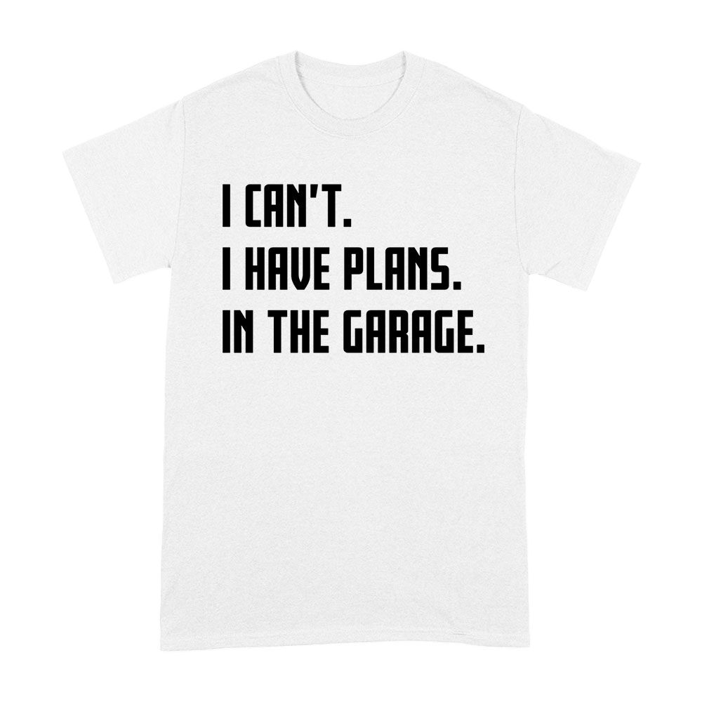 i can’t i have plans, plans in the garage, funny mechanic shirt, car enthusiast tee, garage humor shirt, mechanic gift shirt, car lover t-shirt, automotive quote tee, funny car shirt, mechanic humor shirt, garage plans t-shirt: