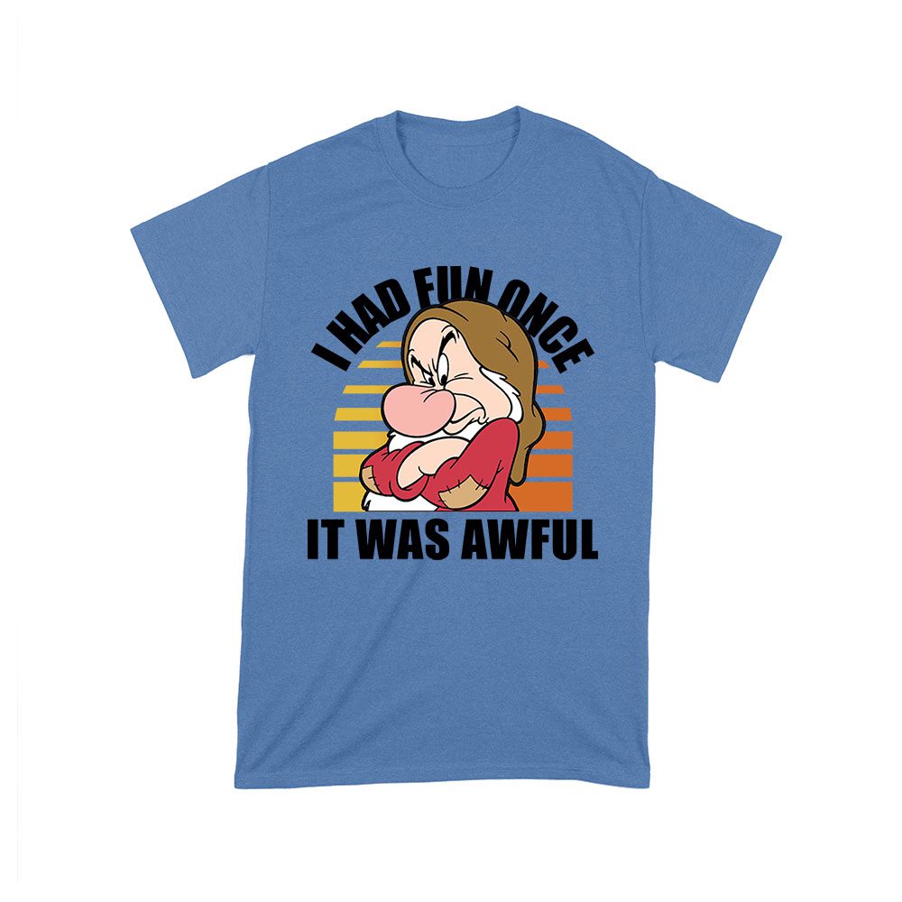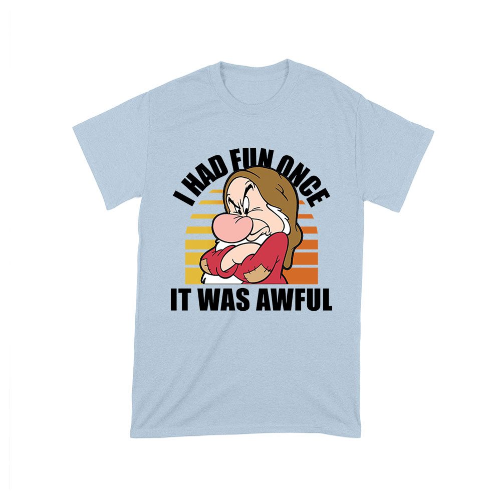 I Had Fun Once – It Was Awful T-Shirt – Funny, Sarcastic Humor Tee for Grumpy and Introverted Personalities