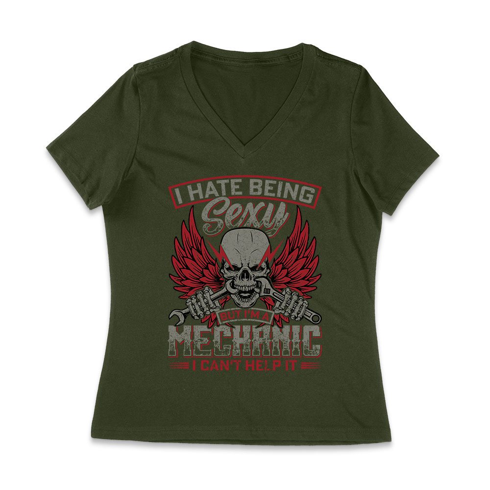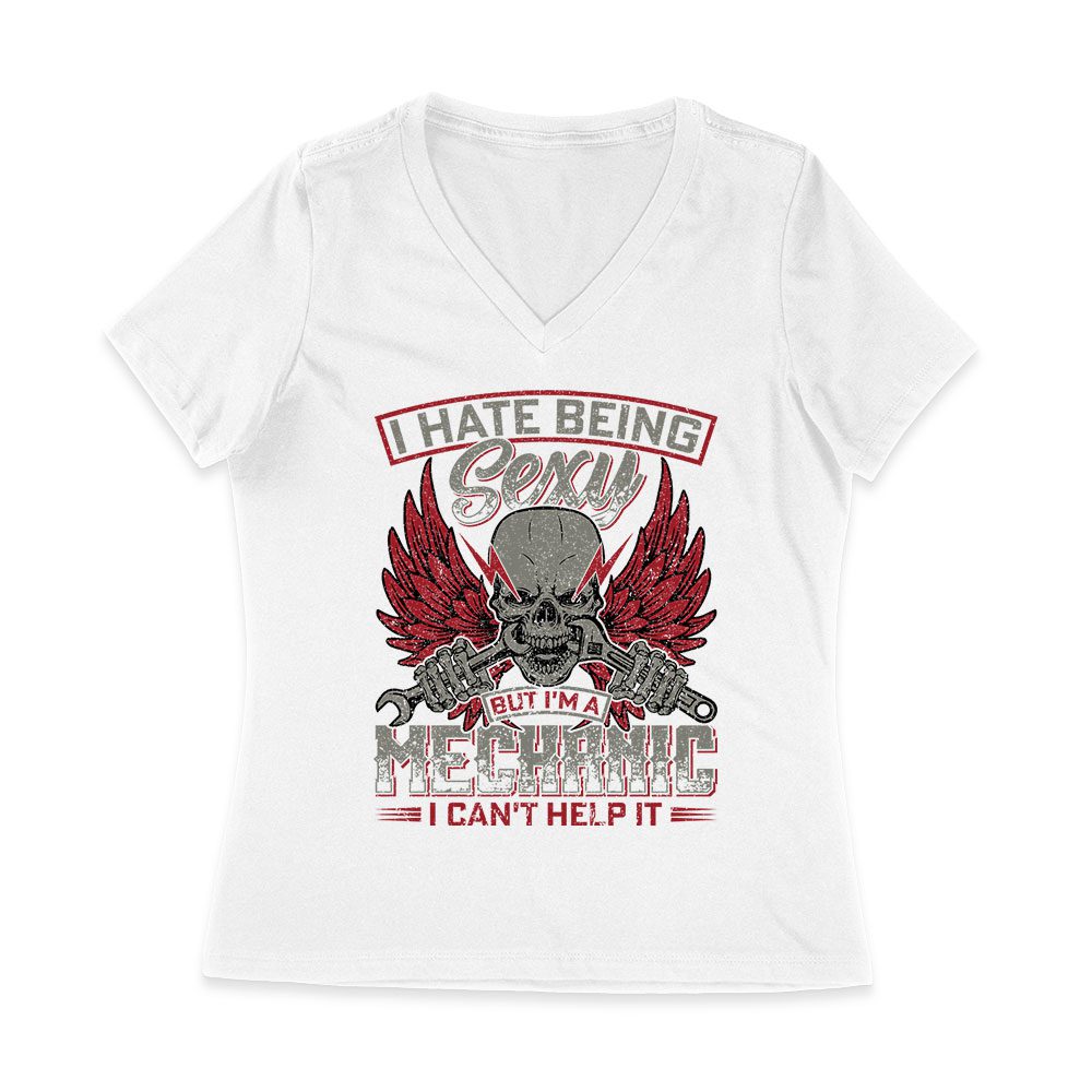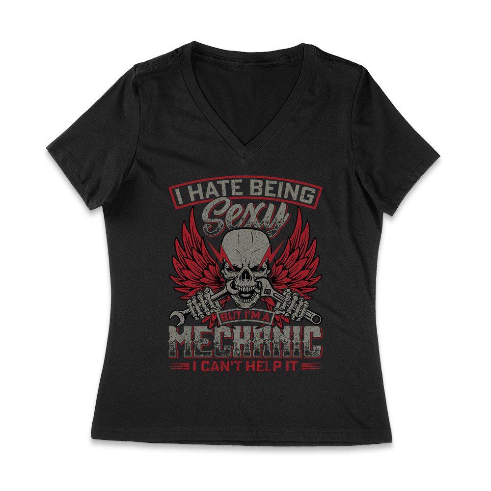 I Hate Being Sexy Mechanic – Skull and Tools Funny Auto Repair T-Shirt for Gearheads Women Jersey V-Neck