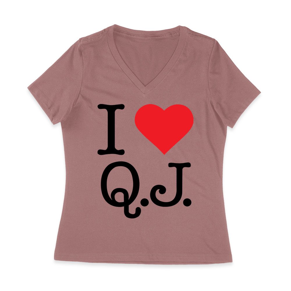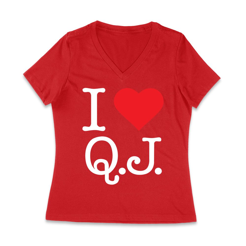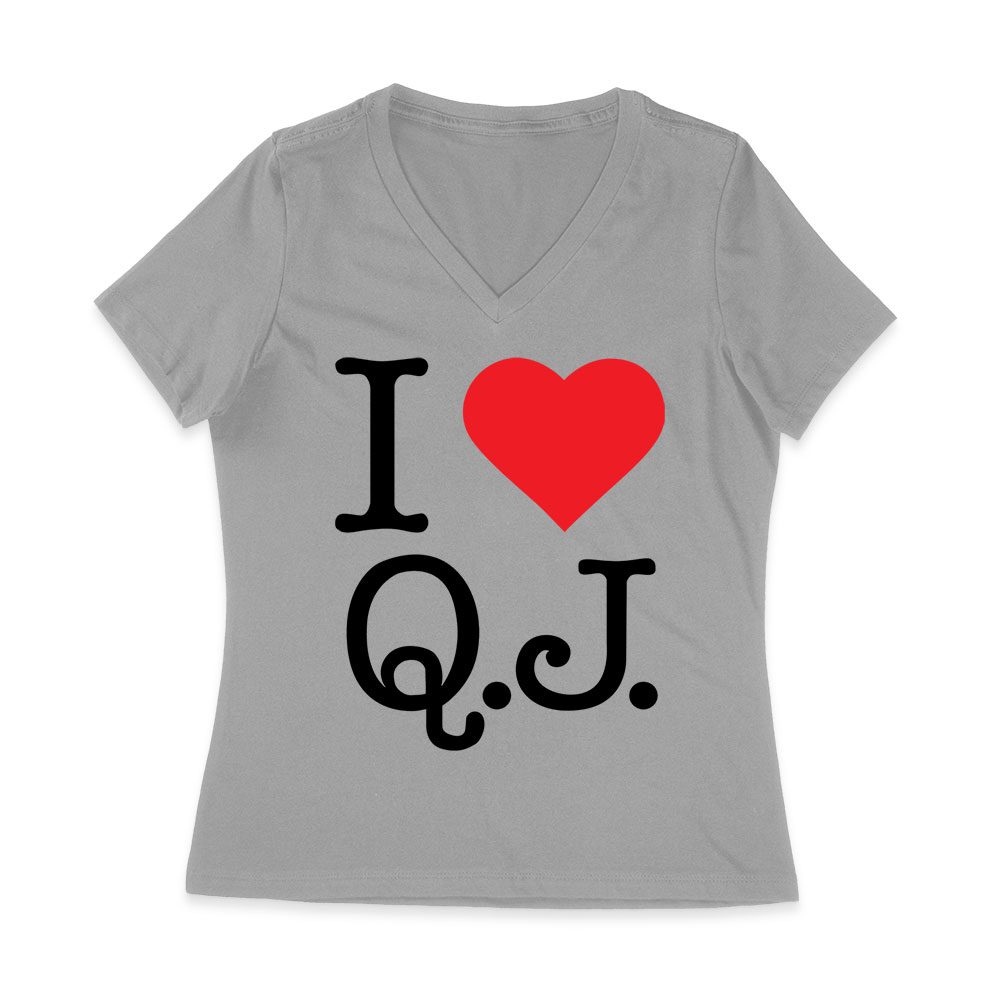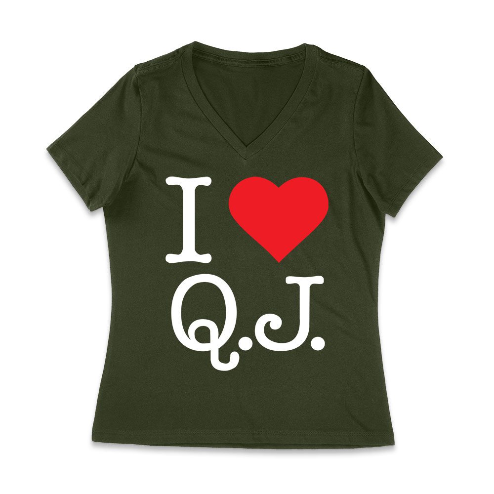 I Love Initials: I Heart (Love) Q.J. – Wear Your Feelings QJ T-Shirt Women Jersey V-Neck