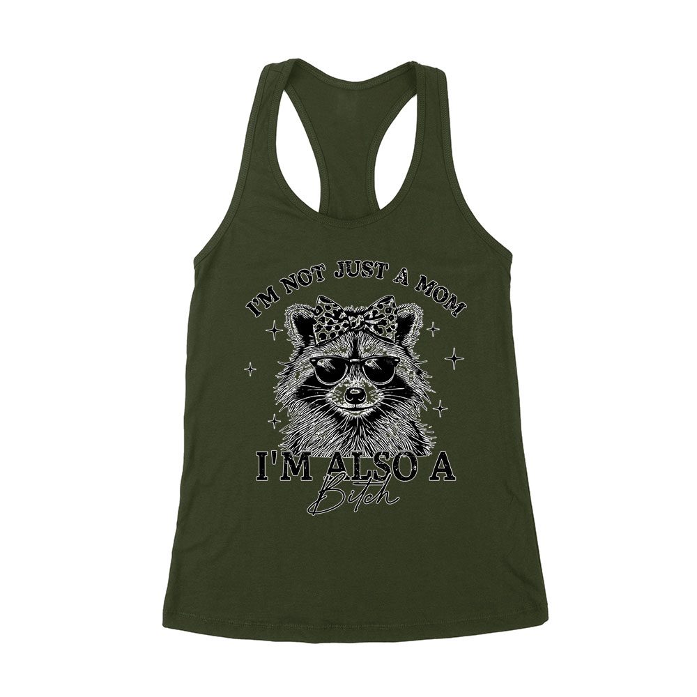 I’m Not Just a Mom, I’m Also a Bitch – Raccoon with Sunglasses Mother’s Day T-Shirt Women’s Racerback Tank Top
