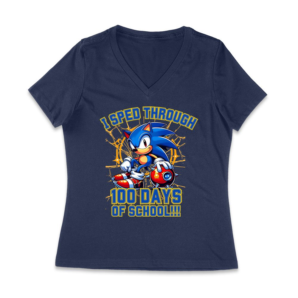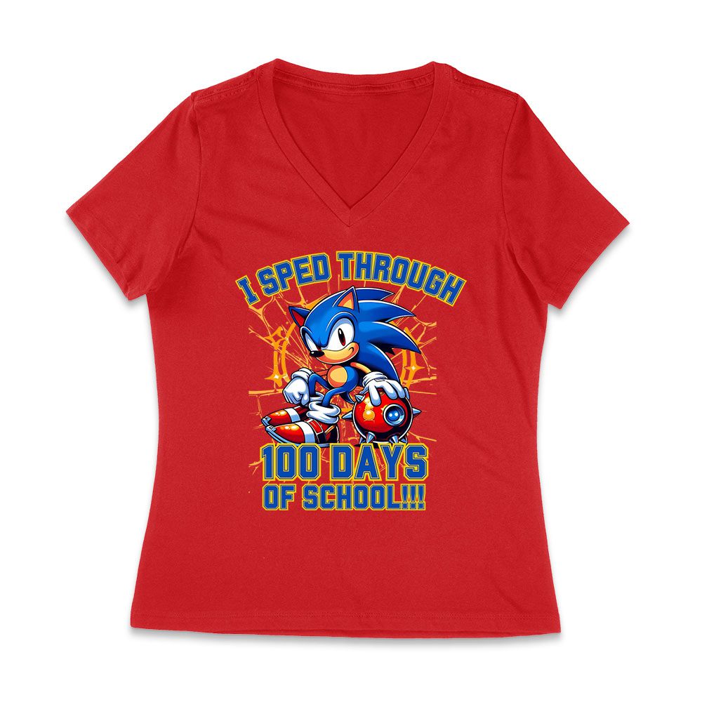 I-Sped-Through-100-Days-of-School T-Shirt – Fun Racing Theme Outfit for Kids-Students & Teachers Women Jersey V-Neck