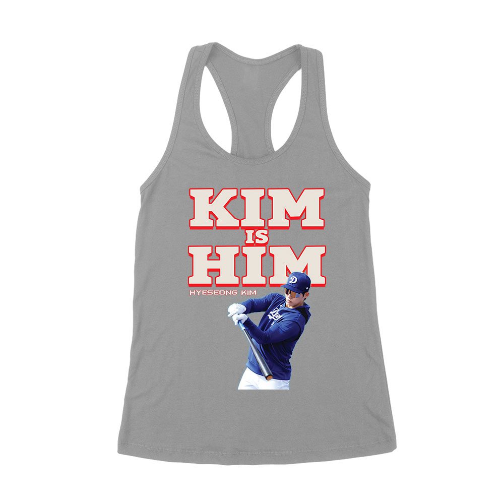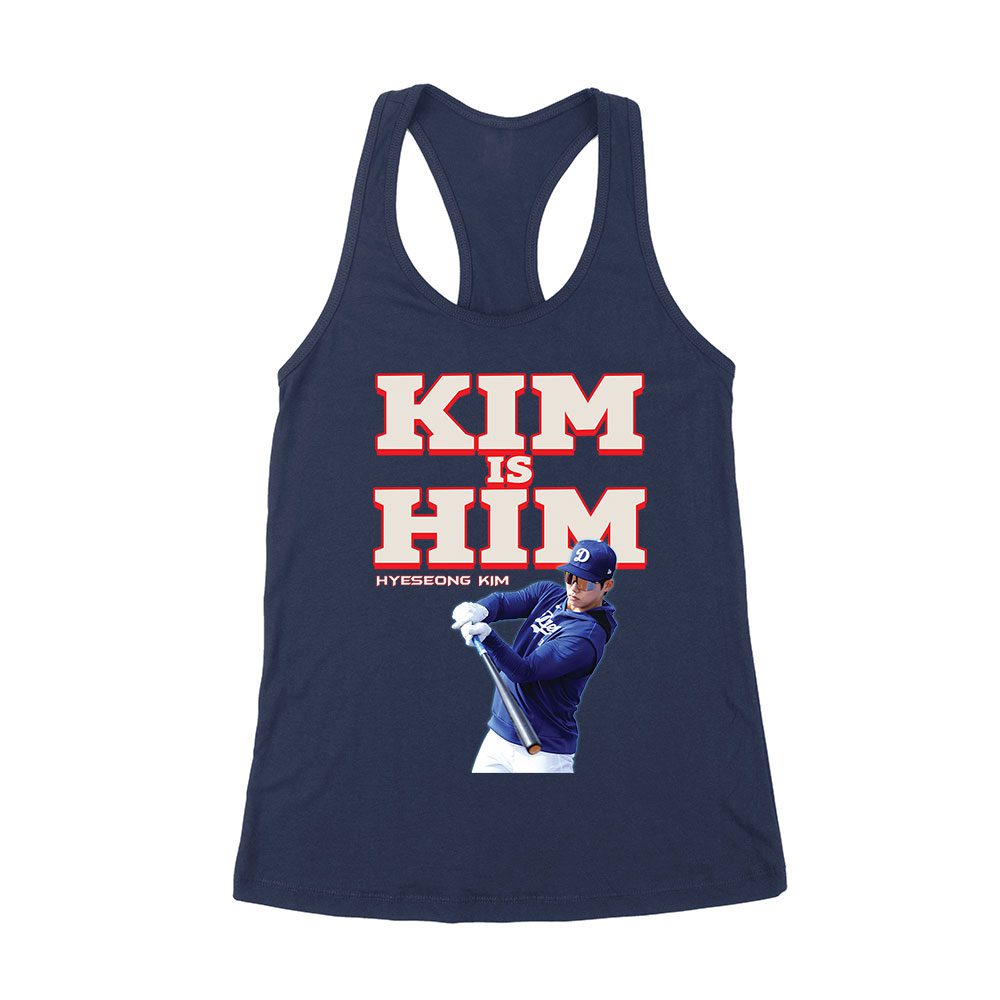 Kim is Him T-Shirt – Bold Athlete Graphic Tee – Dynamic Sports Fan Apparel – Statement Streetwear – Perfect Gift for Baseball Enthusiasts Women’s Racerback Tank Top
