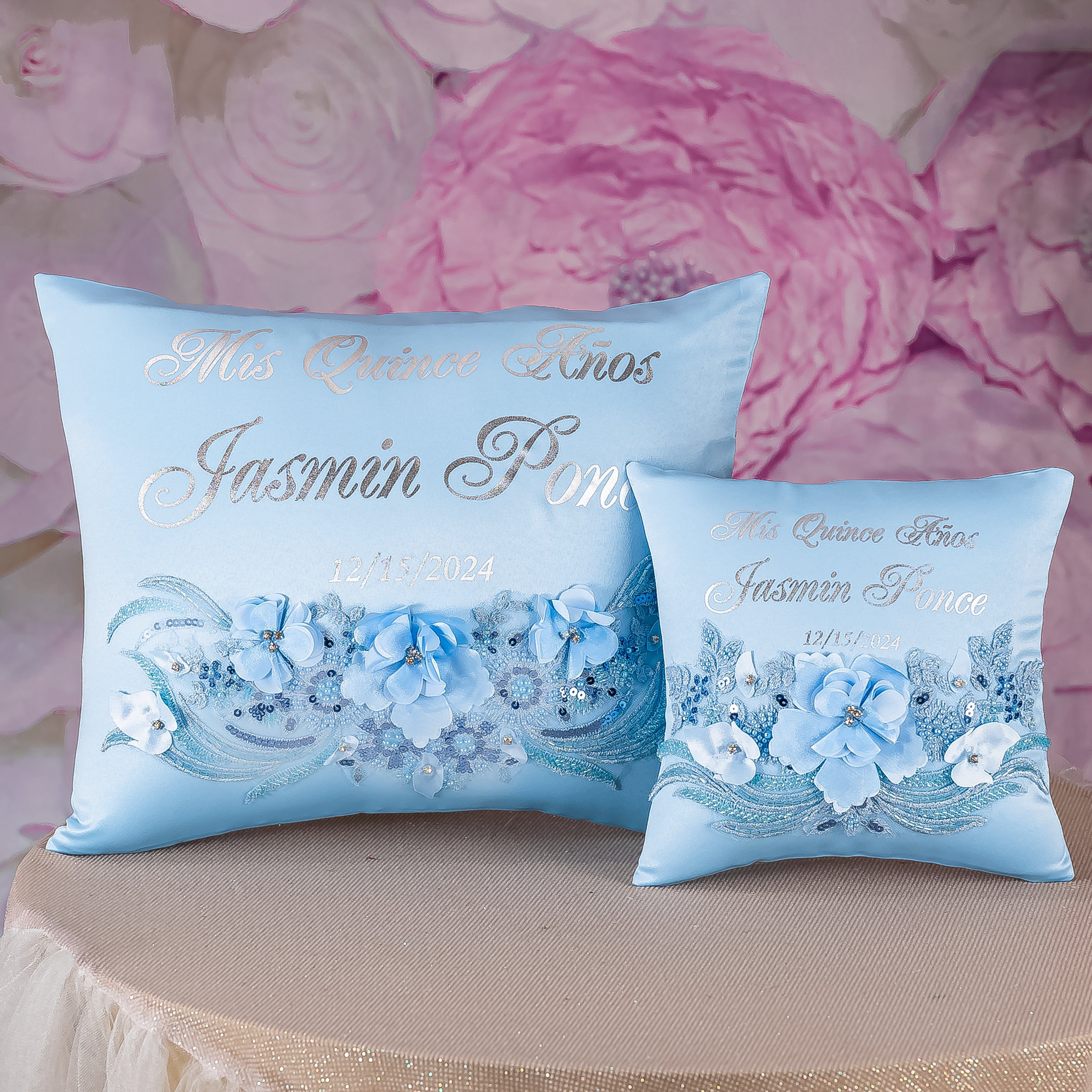 Quincea?era 15 Candles Set in light blue color – a collection of 15 beautiful candles designed to elevate your Quincea?era celebration to new heights. This carefully crafted set includes 14 small candles and 1 large centerpiece candle that can be personalized with name and date, adding a personalized touch to your unique Quincea?era party.15 Candles set includes: ~ 14 taper candles with 14 holders~ 1 pillar candle with holderAll the items are hand-made.Can be personalized with name and date of your celebration.We can decorate this set with any color or text you want.