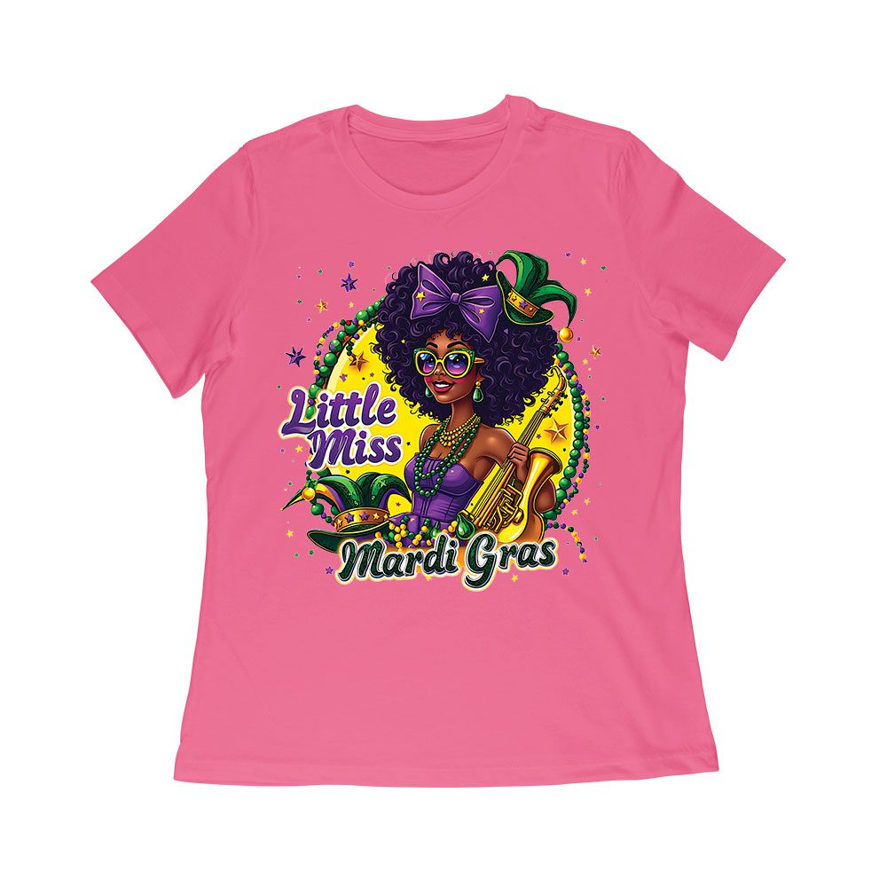 Little Miss Mardi Gras T-Shirt – Cute Glitter-Inspired Design for Girls, Fun Carnival Outfit, Festive New Orleans Party Wear Women Relaxed