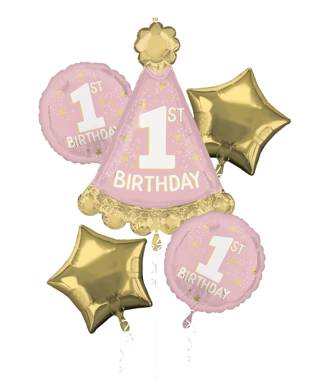 Baby Girl Foil Balloon Bouquet (5 Balloons), Baby shower, Birthday Party
