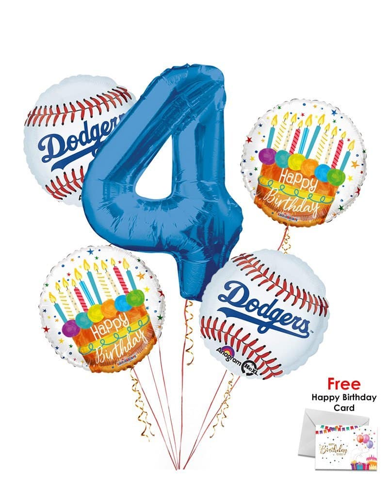 Los Angelese Dodgers Happy Birthday Balloon Bouquet (5 Balloons)