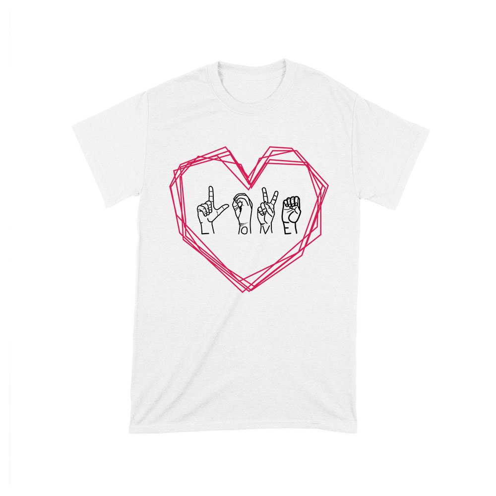 love hand sign, valentine’s day t-shirt, love heart design, romantic gift idea, valentine’s couples shirt, unique love shirt, cute romantic shirt, him or her shirt, couple love shirt, love-themed outfit, valentine gift tee, heart design t-shirt: