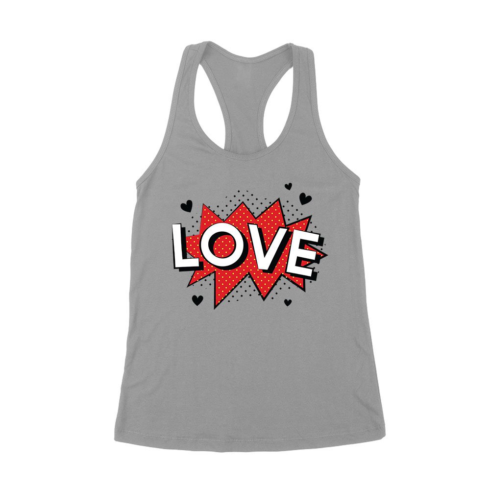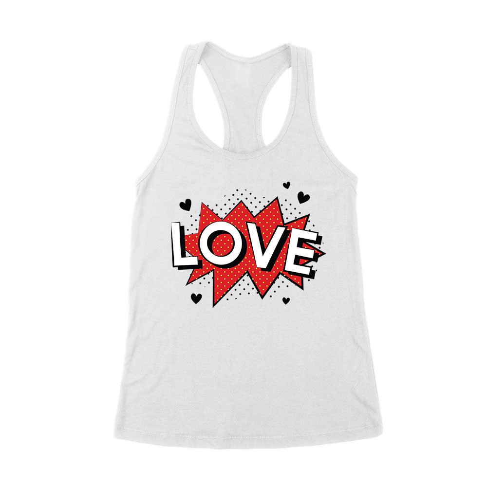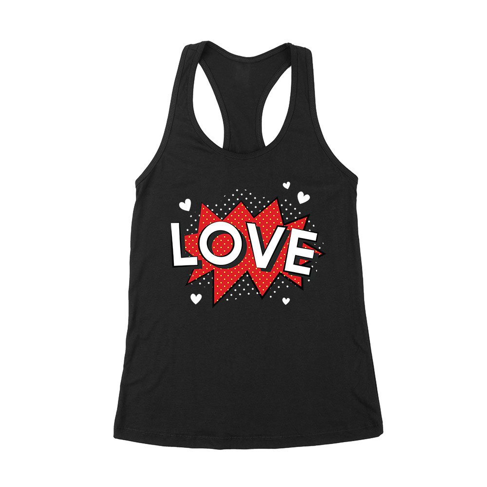 Love T-Shirt – Bold Comic Style Design, Cute Valentine’s Day Gift, Fun Romantic Outfit for Couples, Him or Her Women’s Racerback Tank Top
