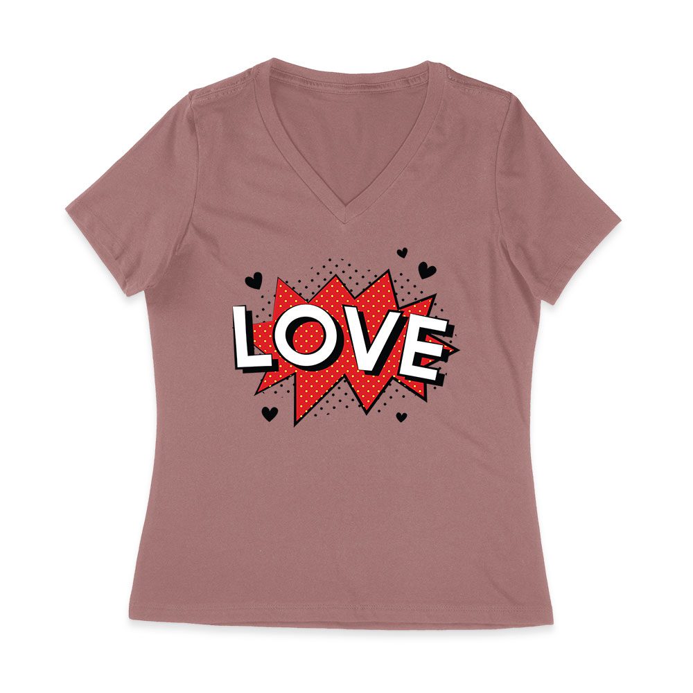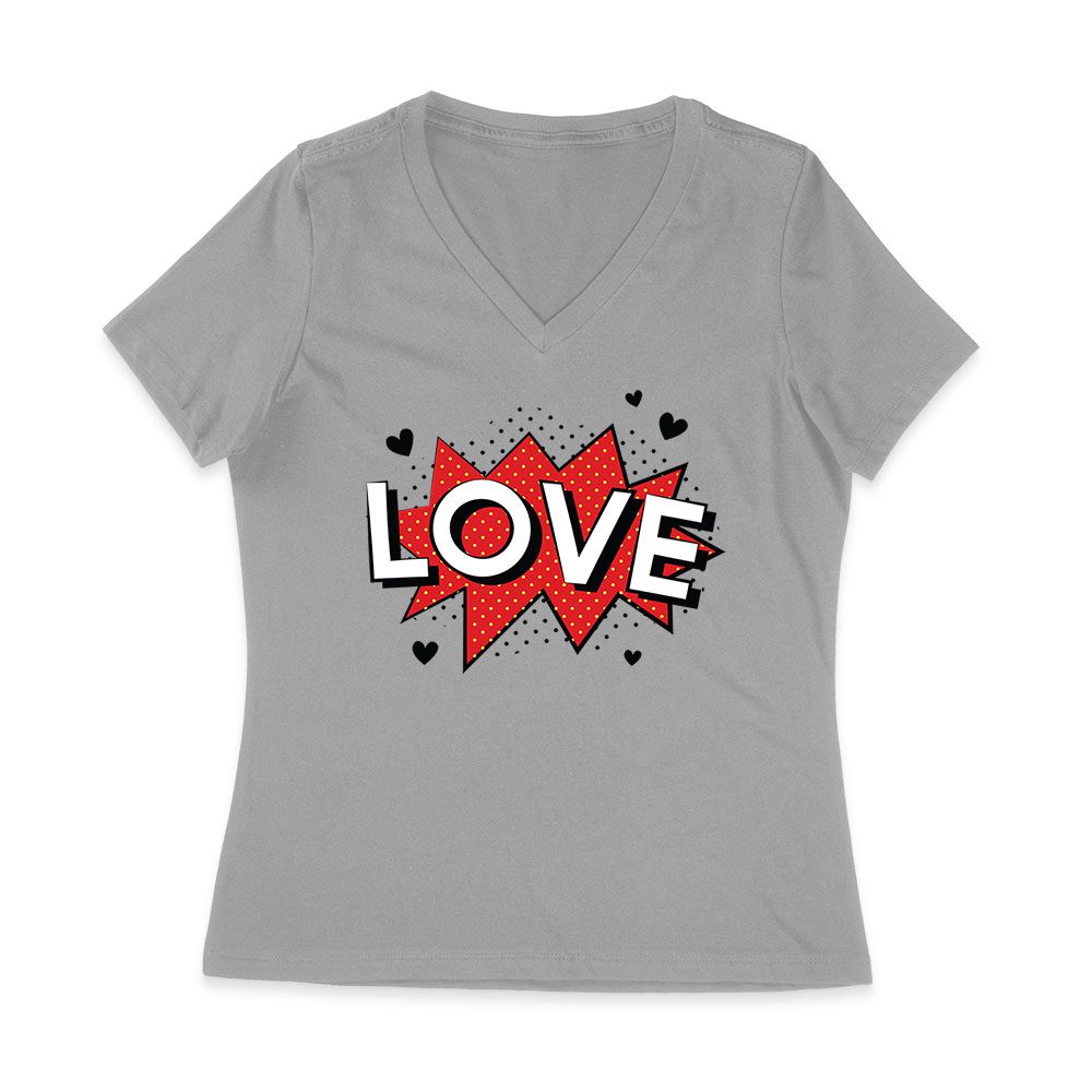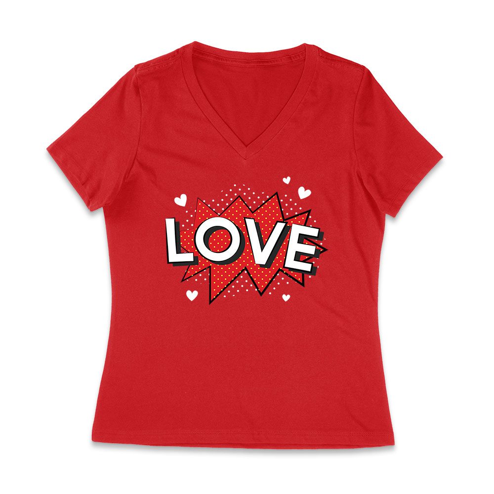 Love T-Shirt – Bold Comic Style Design, Cute Valentine’s Day Gift, Fun Romantic Outfit for Couples, Him or Her Women Jersey V-Neck