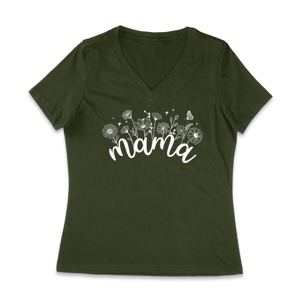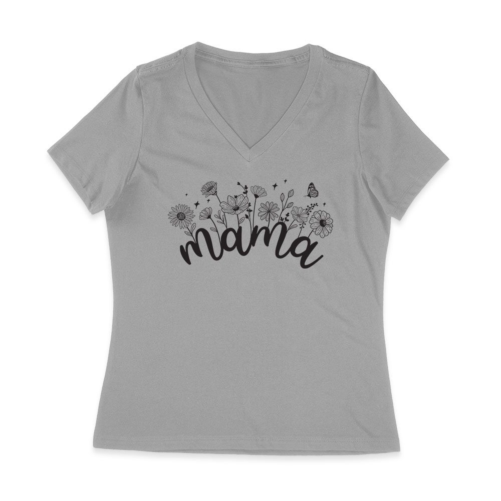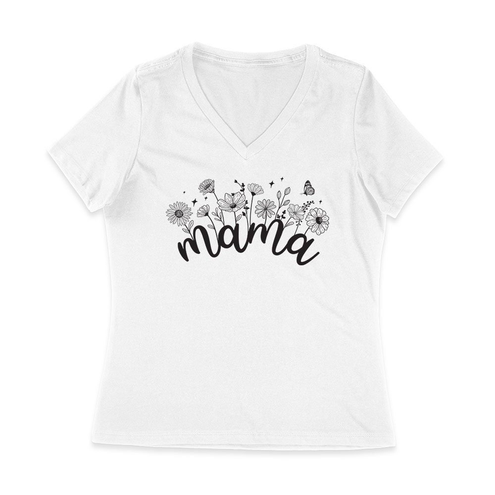 Mama Mother’s Day T-Shirt – Floral Mom Tee – Cute Gift for Mom – Flower Background Shirt Women Jersey V-Neck
