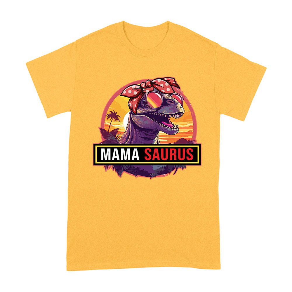 “Mama Saurus” Dinosaur Mom T-Shirt – Fun Retro Vintage Style Tee for Cool Moms and Dino Lovers Unisex Adult