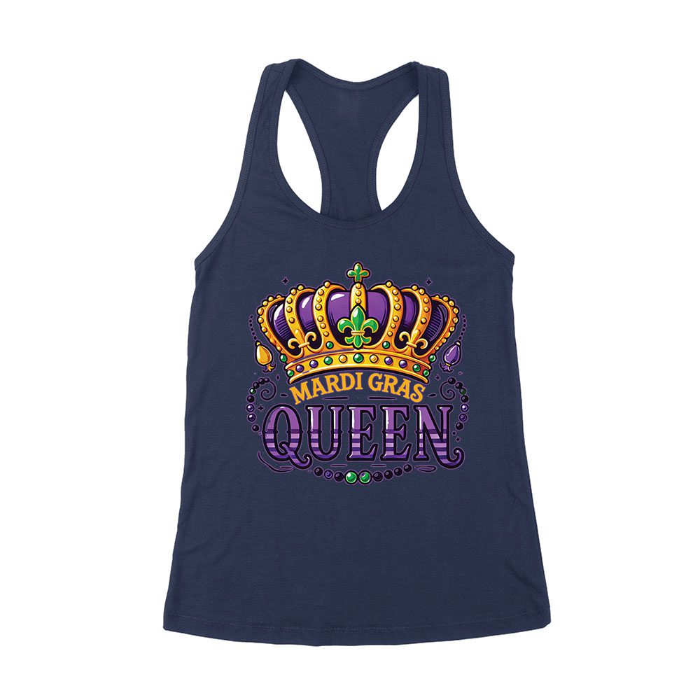 Mardi Gras Queen T-Shirt – Royal Carnival Design for Festive Parades, Parties & Celebrations, Perfect for Mardi Gras Enthusiasts Women’s Racerback Tank Top
