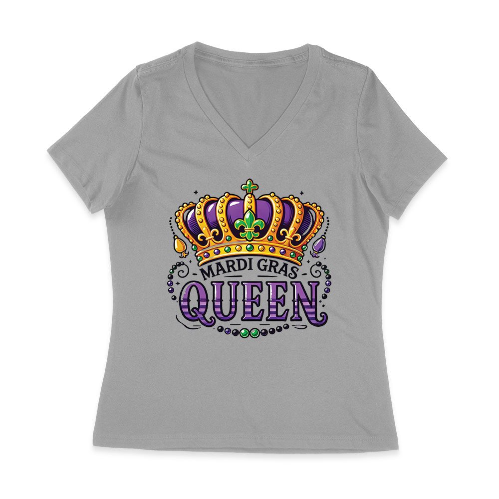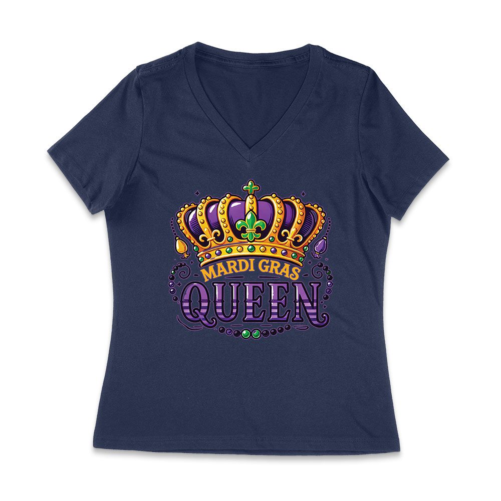 Mardi Gras Queen T-Shirt – Royal Carnival Design for Festive Parades, Parties & Celebrations, Perfect for Mardi Gras Enthusiasts Women Jersey V-Neck