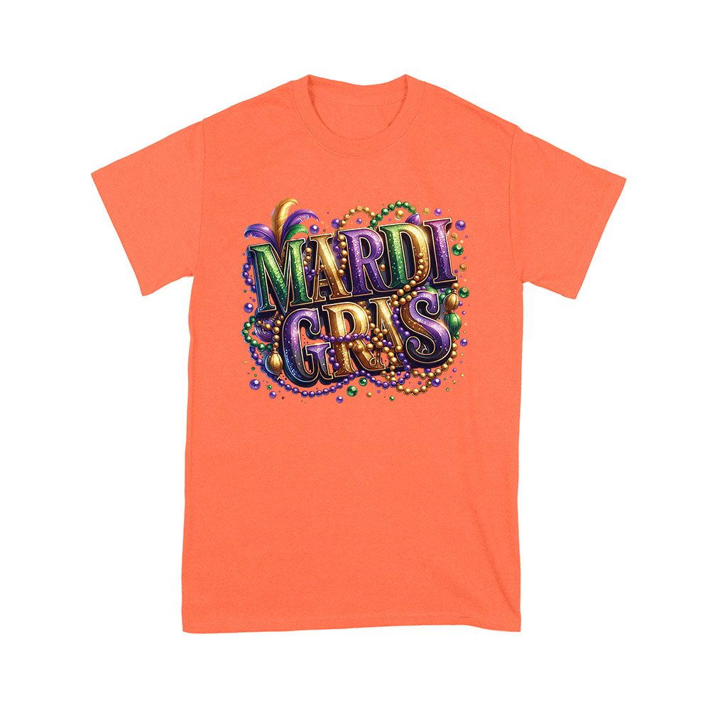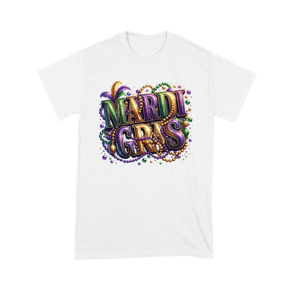Mardi Gras T-Shirt – Vibrant Festive Design, Colorful Beads & Feathers, Party Outfit for Fat Tuesday, New Orleans Carnival Celebration