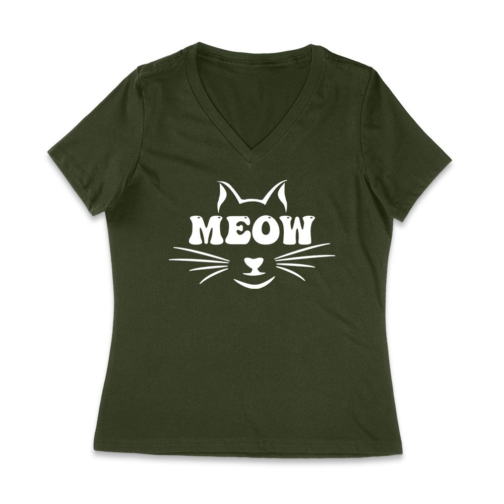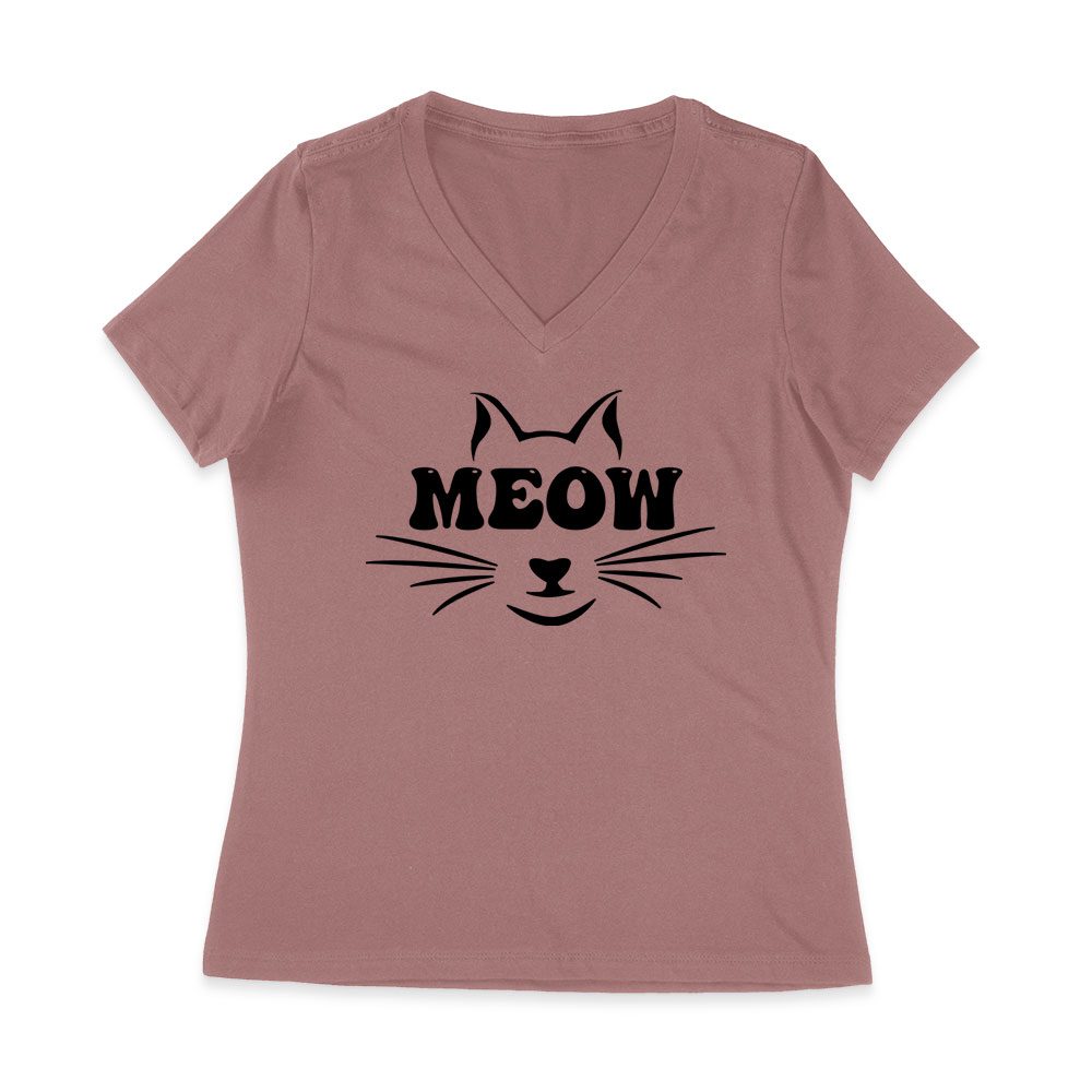 Meow T-Shirt – Cute Cat Lover Tee for Feline Fans, Pet Owners, Kitten Enthusiasts, Animal Lovers, and Funny Cat Gift Women Jersey V-Neck