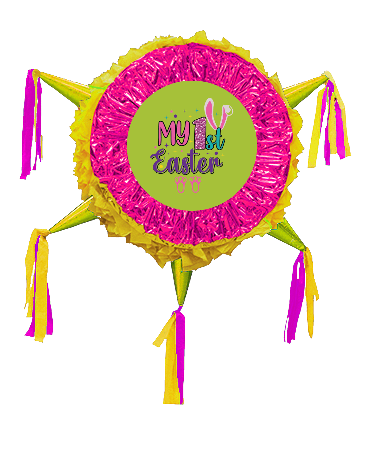 Celebrate with the my 1st easter Pinata 24 inch! A sturdy and colorful 24 inch design, perfect for birthdays, holidays, and family gatherings. Easy to fill, fun to break, and sure to delight kids and adults alike.