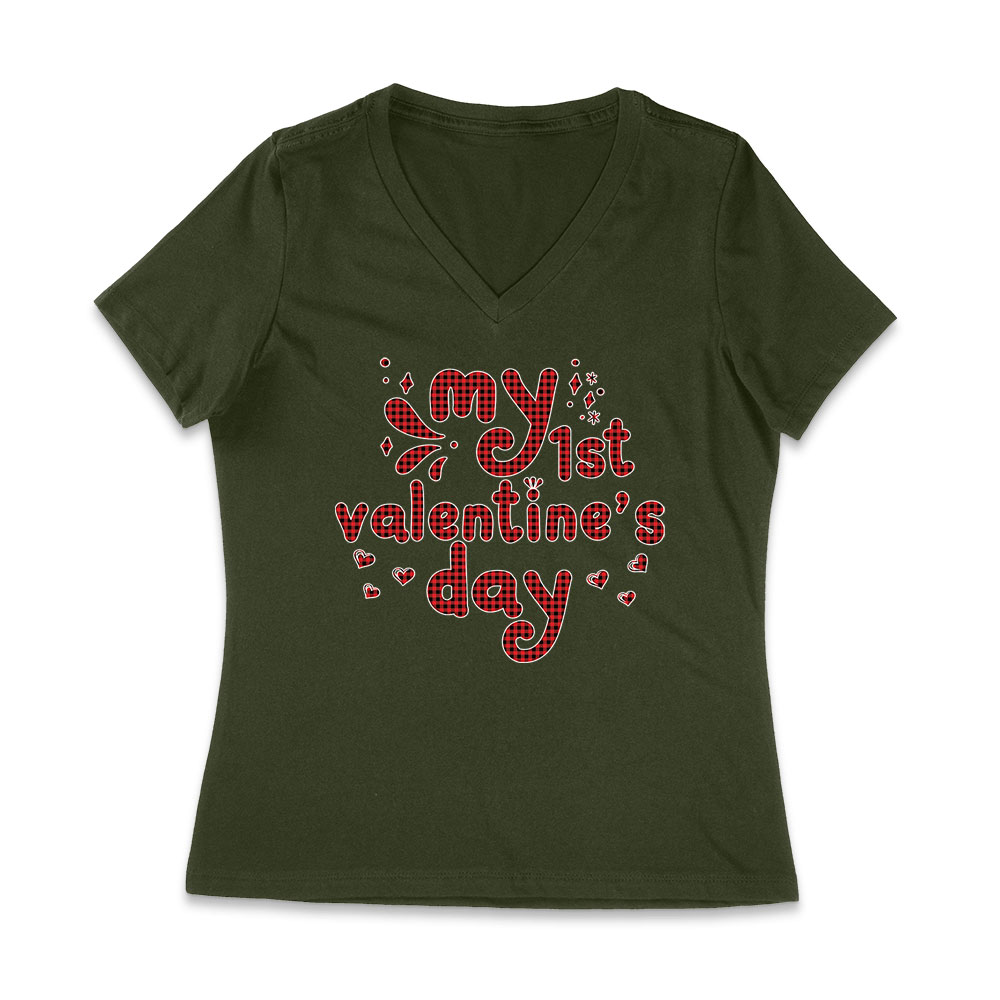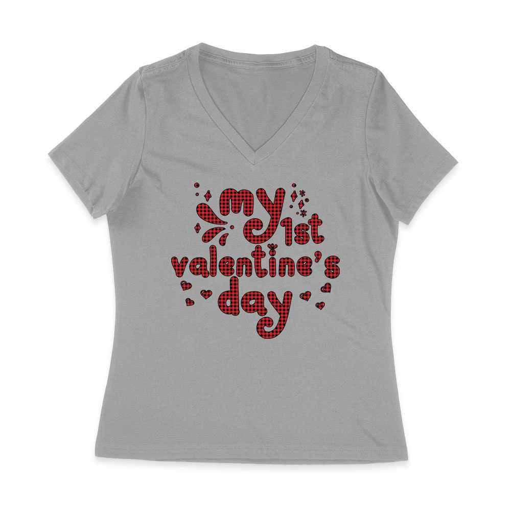 My 1st Valentine’s Day T-Shirt ? Adorable Baby Valentine’s Outfit, Cute First Love Gift Women Jersey V-Neck