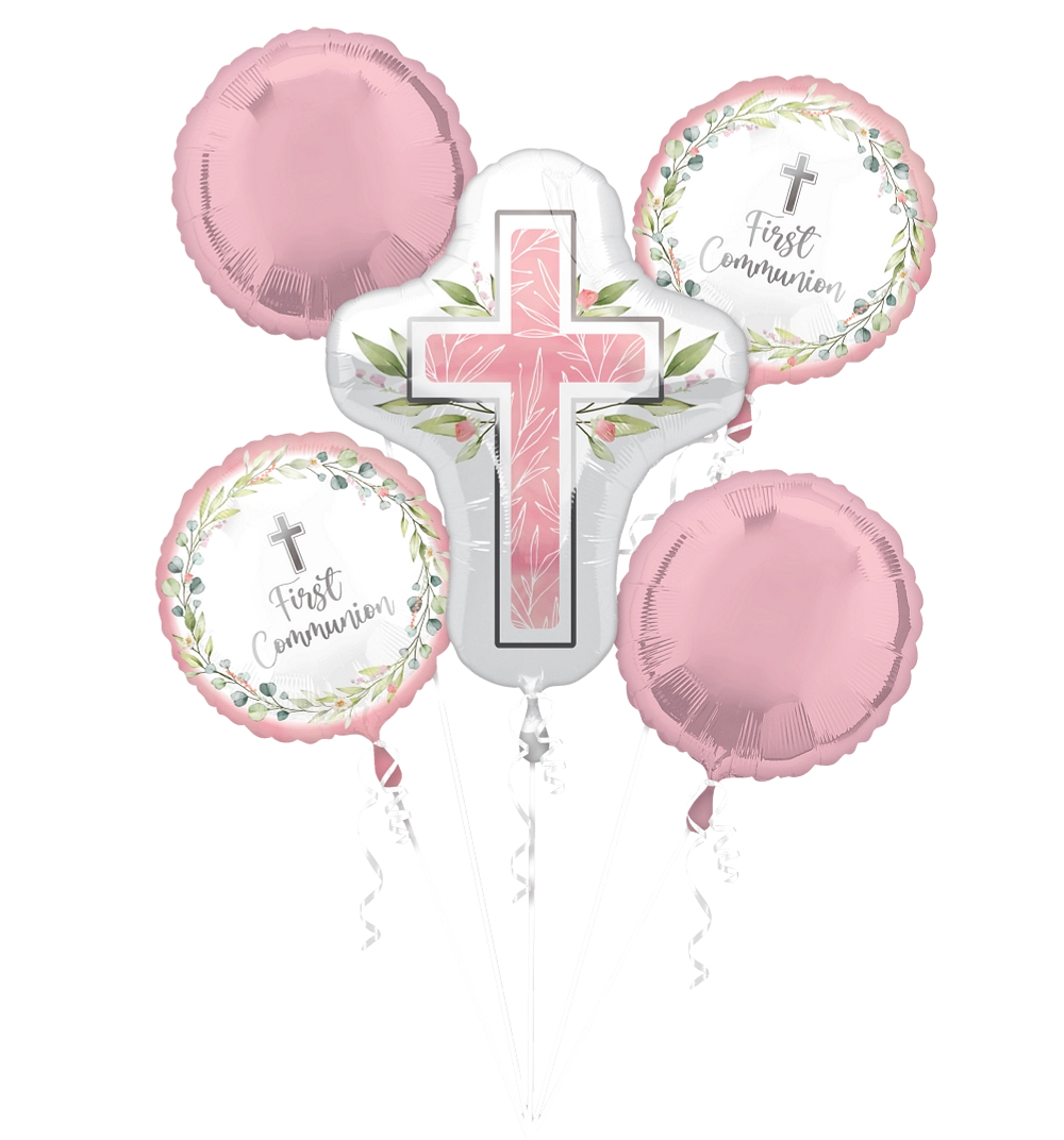 My First Communion Pink Foil Balloon Bouquet (5 Balloons)
