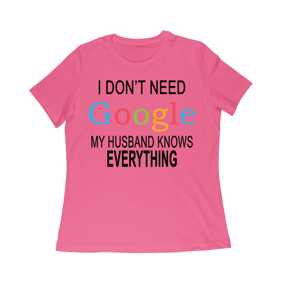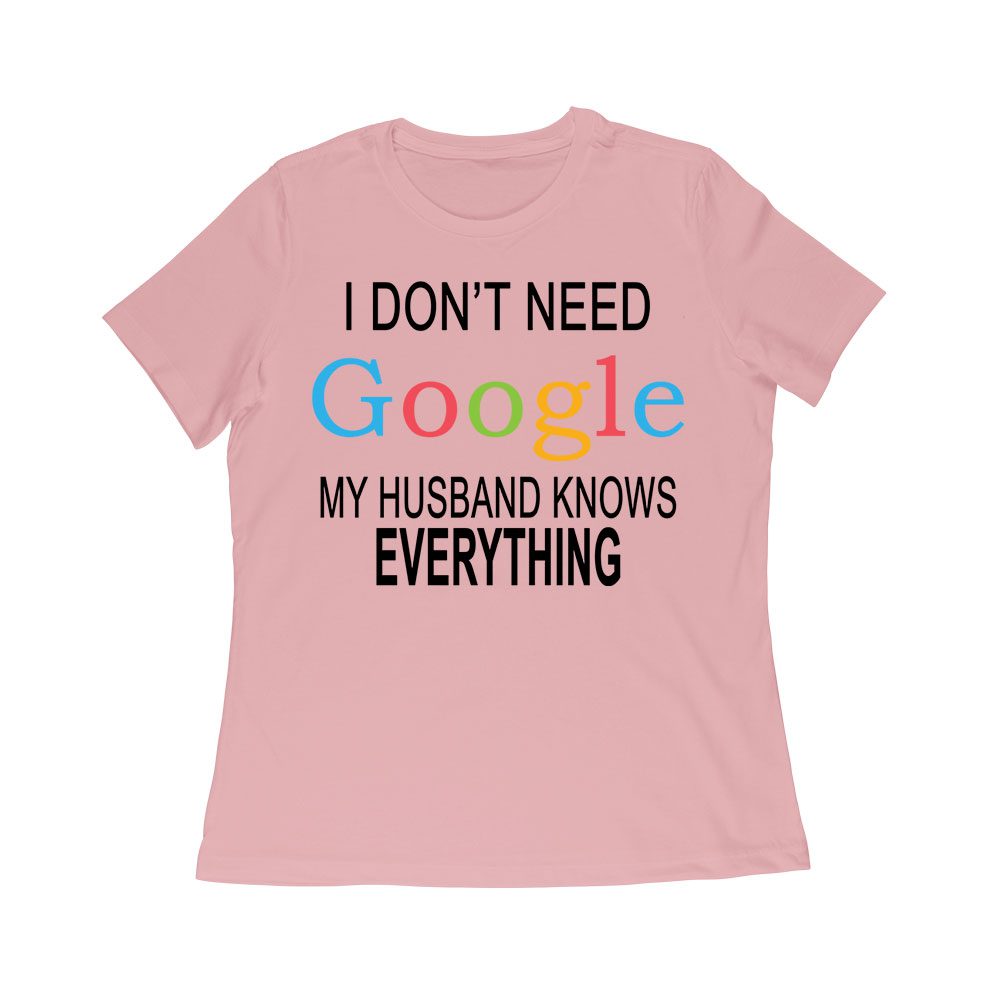 My Husband Knows Everything – Funny Marriage Quote T-Shirt for Wives and Couples Women Relaxed