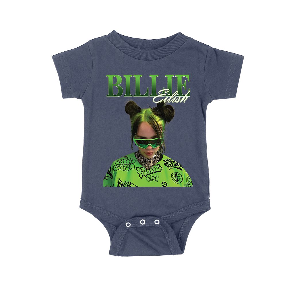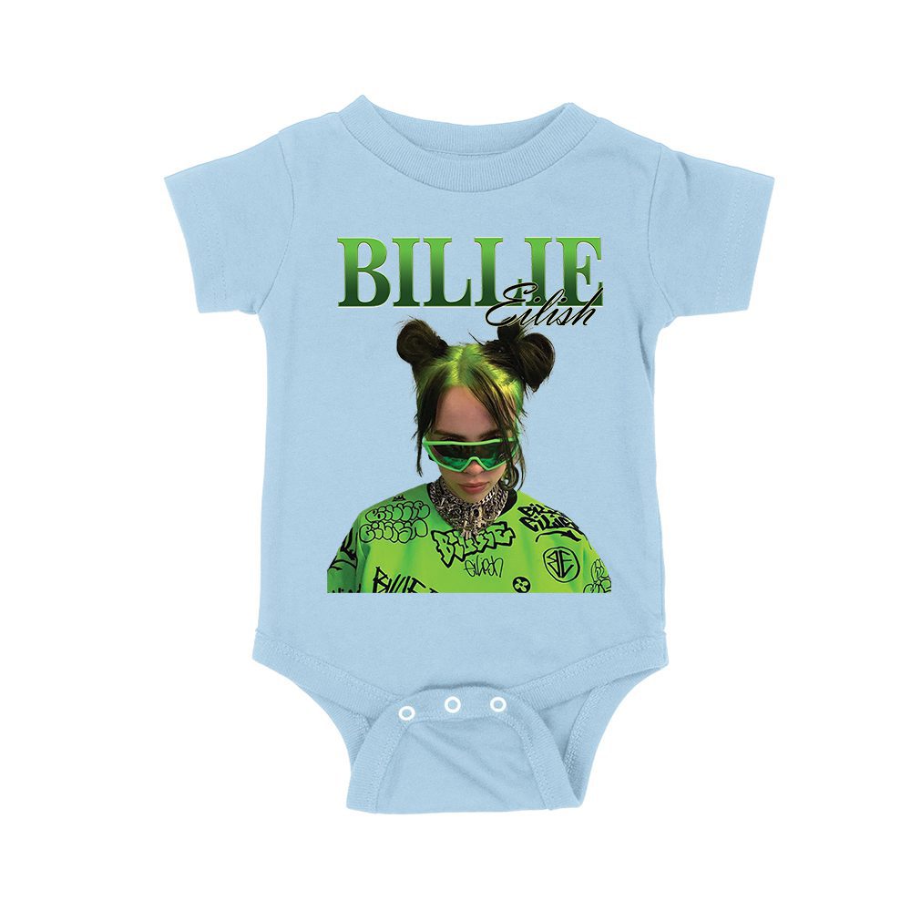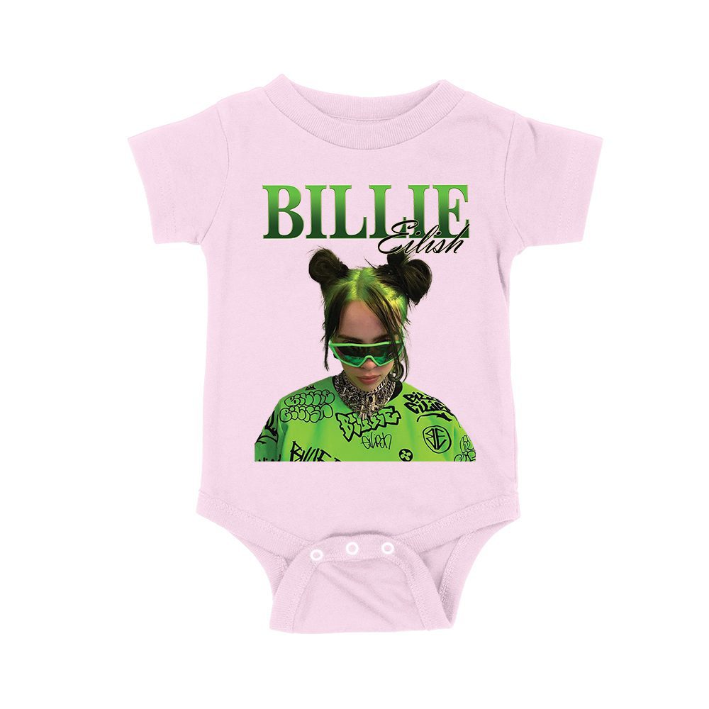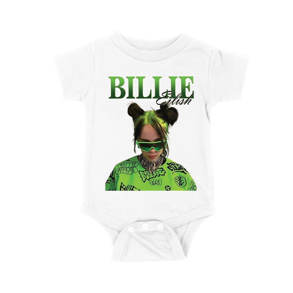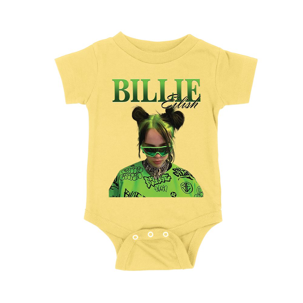 Neon Green Billie Eilish Face Design T-Shirt with Signature Look Unisex Baby Jersey