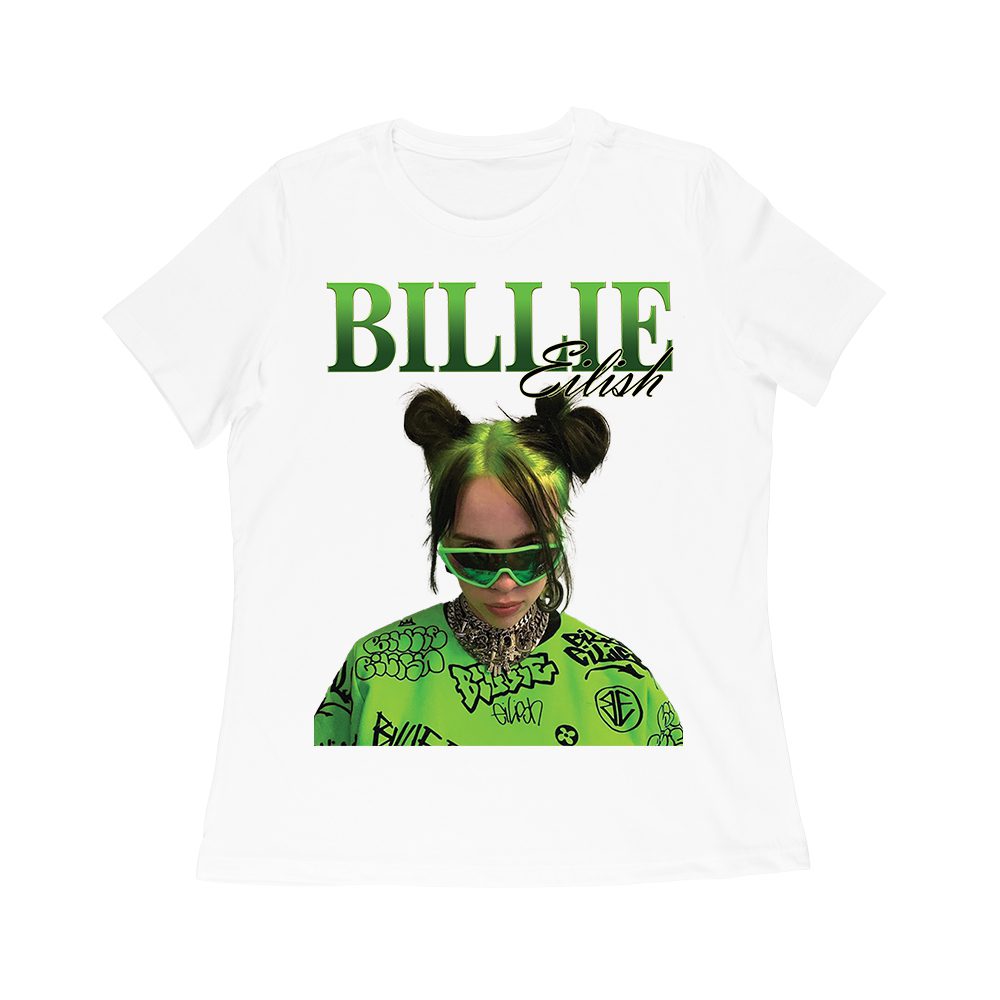 Neon Green Billie Eilish Face Design T-Shirt with Signature Look Women Relaxed