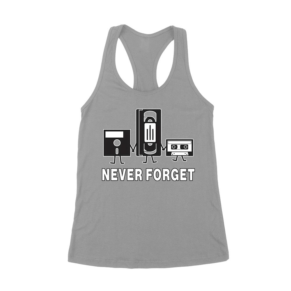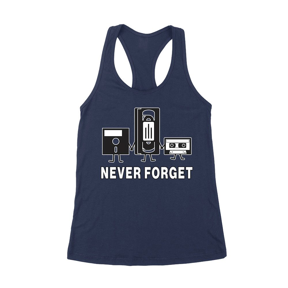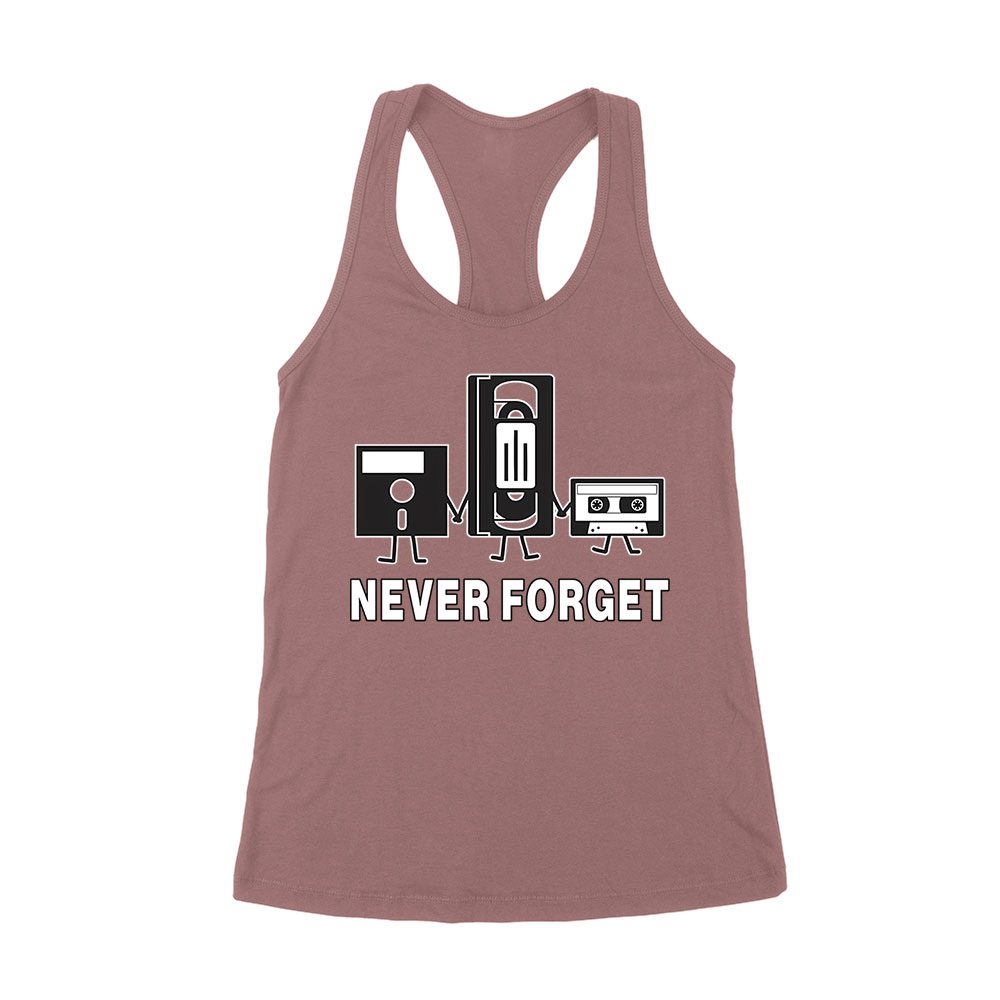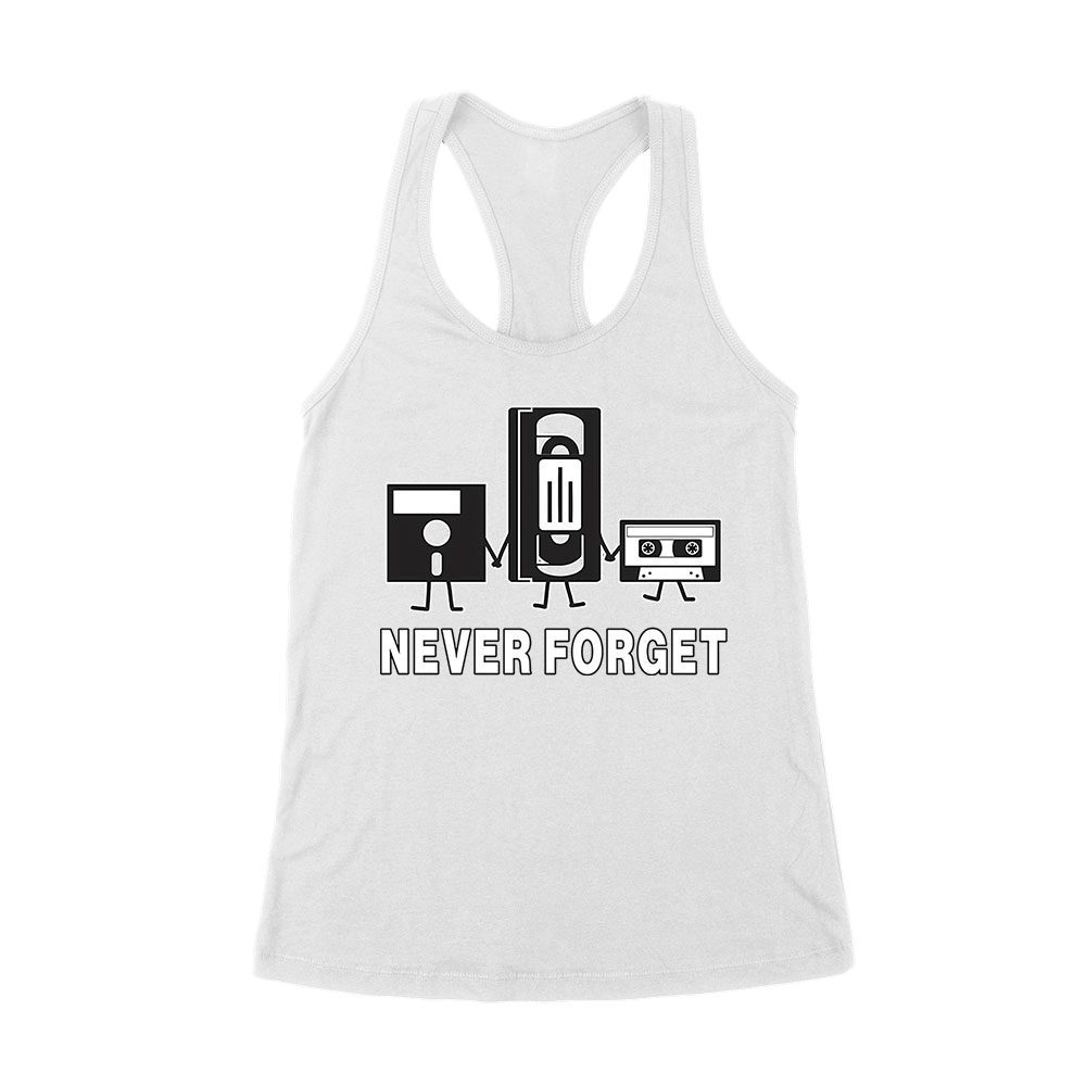 Never Forget Old Cassette, Floppy, and Deck Disk T-Shirt ? Retro Nostalgia Tee for Classic Tech and Vintage Vibe Lovers Women’s Racerback Tank Top