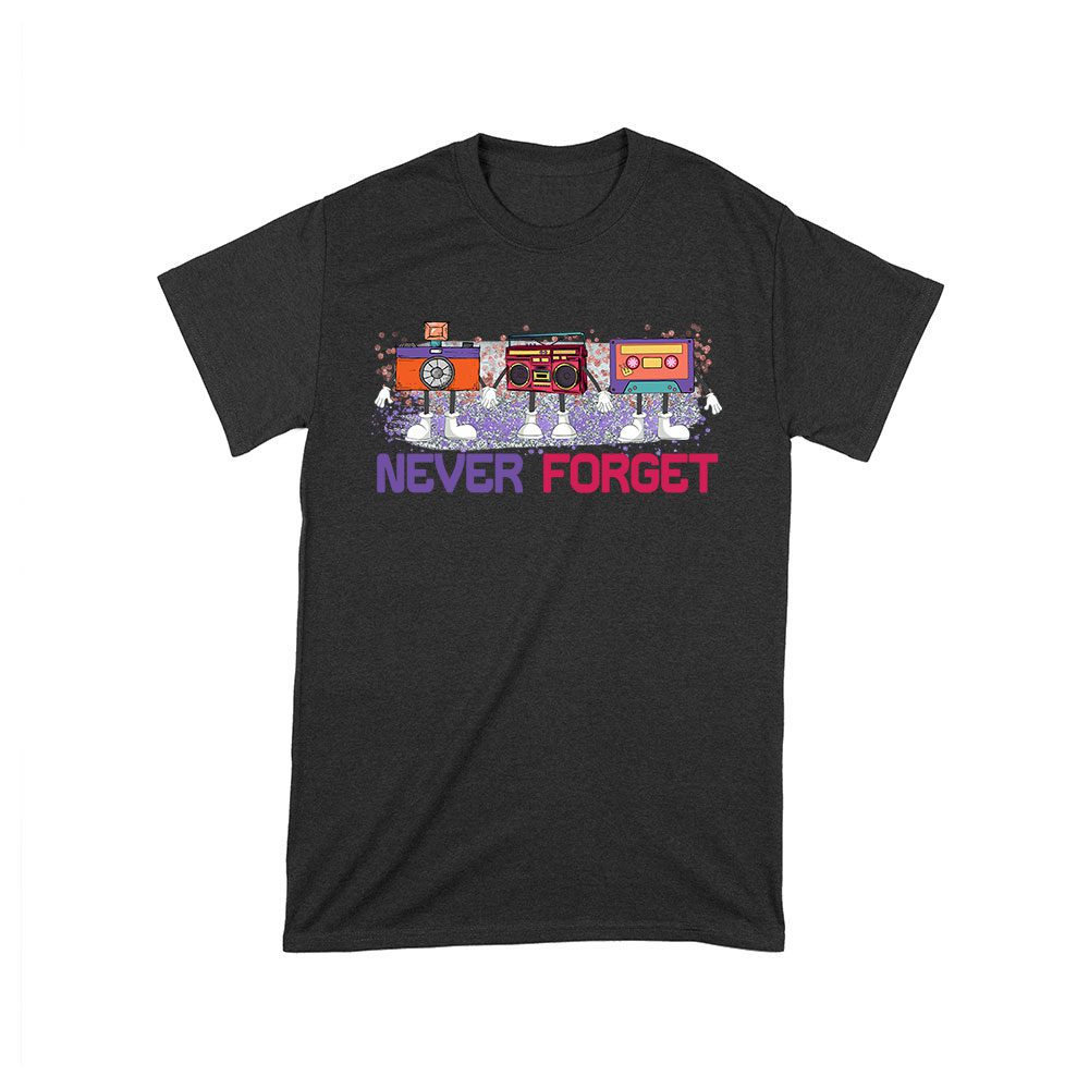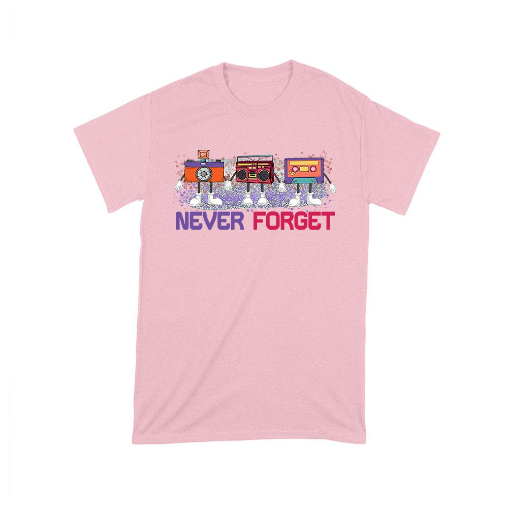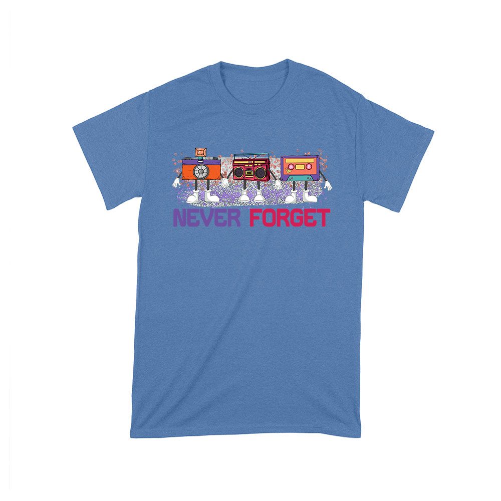 Never Forget – Old Cassette – Camera – and Cassette Piece T-Shirt – Retro Nostalgia Tee for Classic Tech and Vintage Lovers
