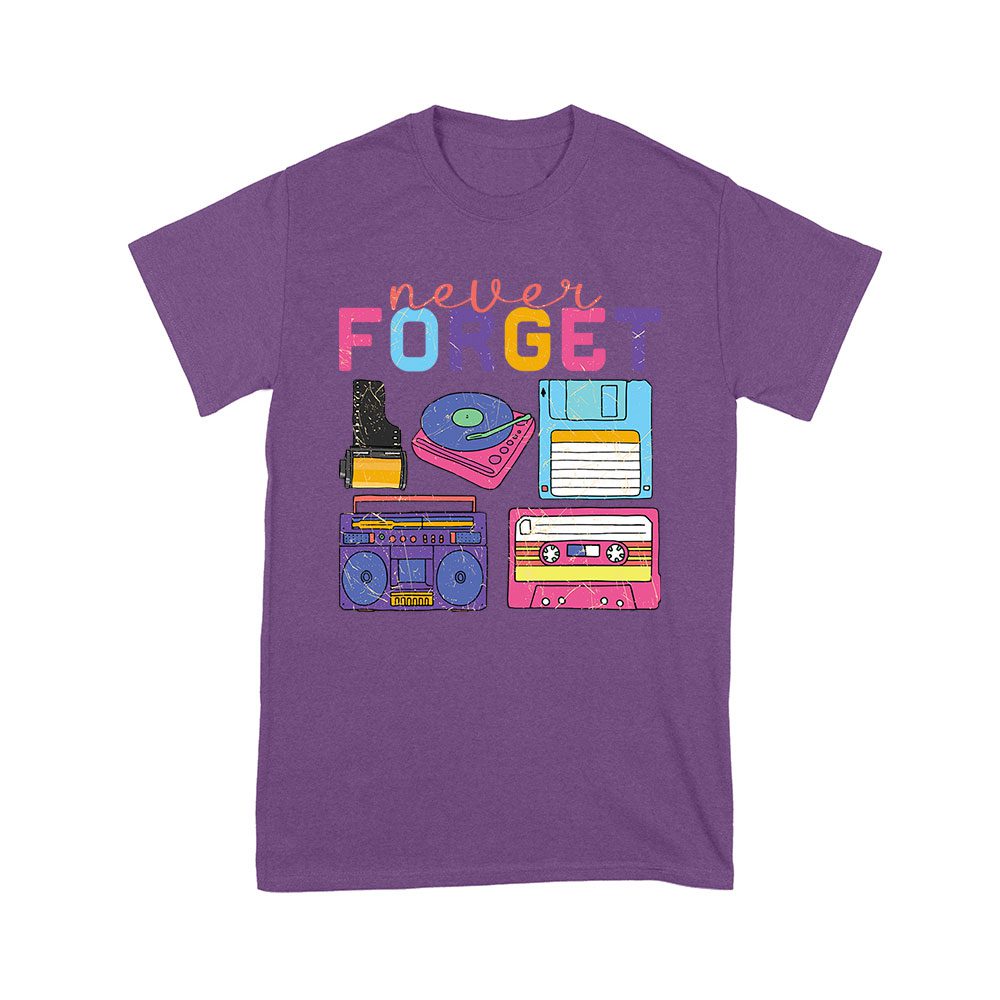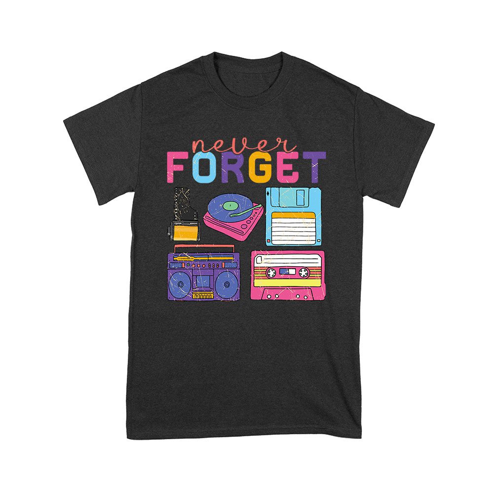 Never Forget – Camera Reel – Gramophone – Floppy Cassette – and Cassette Piece T-Shirt – Retro Nostalgia Tee for Vintage Tech Lovers