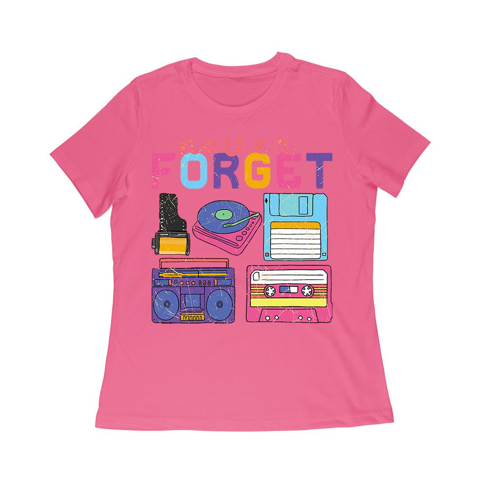 Never Forget – Camera Reel – Gramophone – Floppy Cassette – and Cassette Piece T-Shirt – Retro Nostalgia Tee for Vintage Tech Lovers Women Relaxed