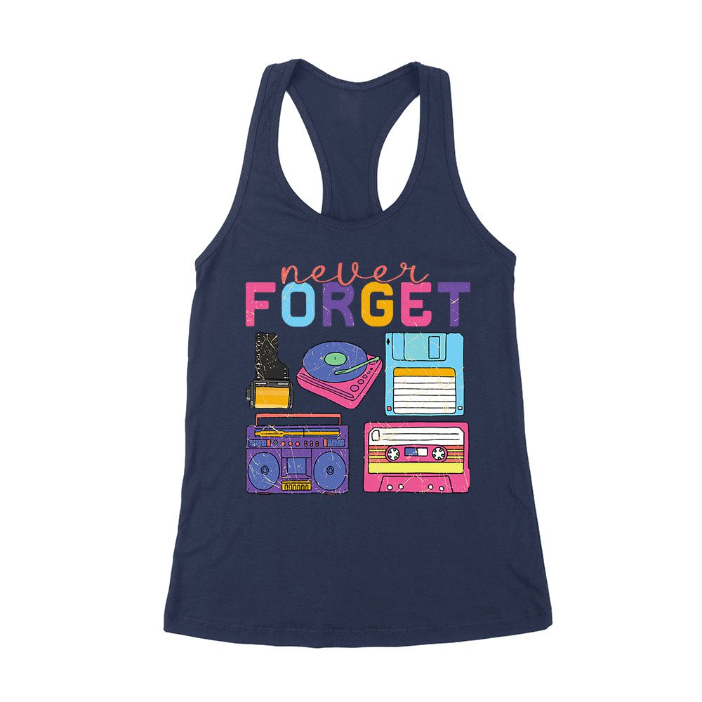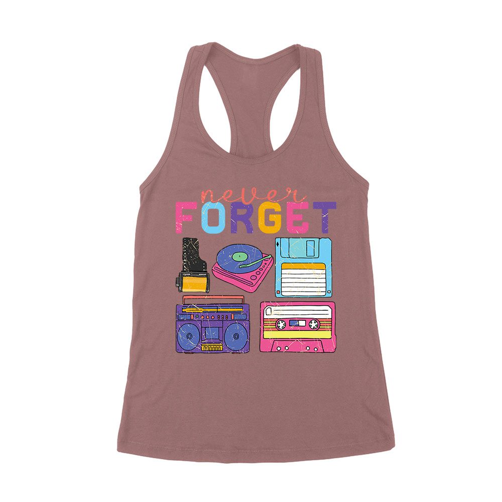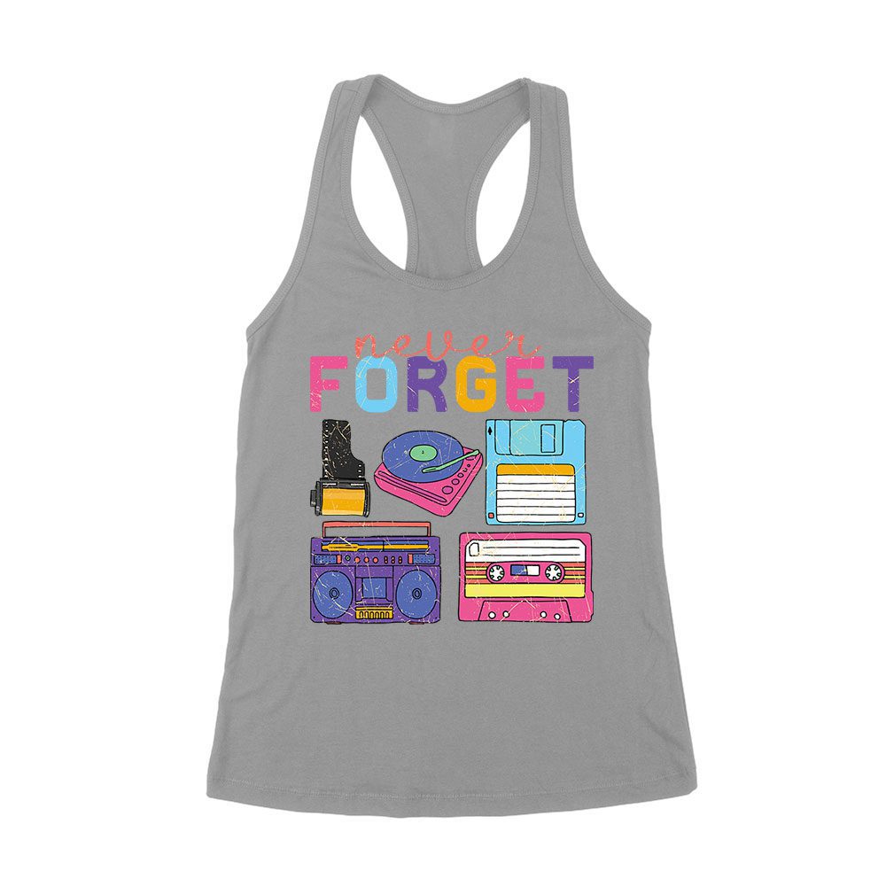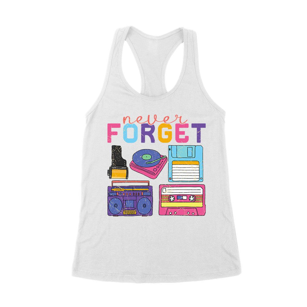 Never Forget – Camera Reel – Gramophone – Floppy Cassette – and Cassette Piece T-Shirt – Retro Nostalgia Tee for Vintage Tech Lovers Women’s Racerback Tank Top