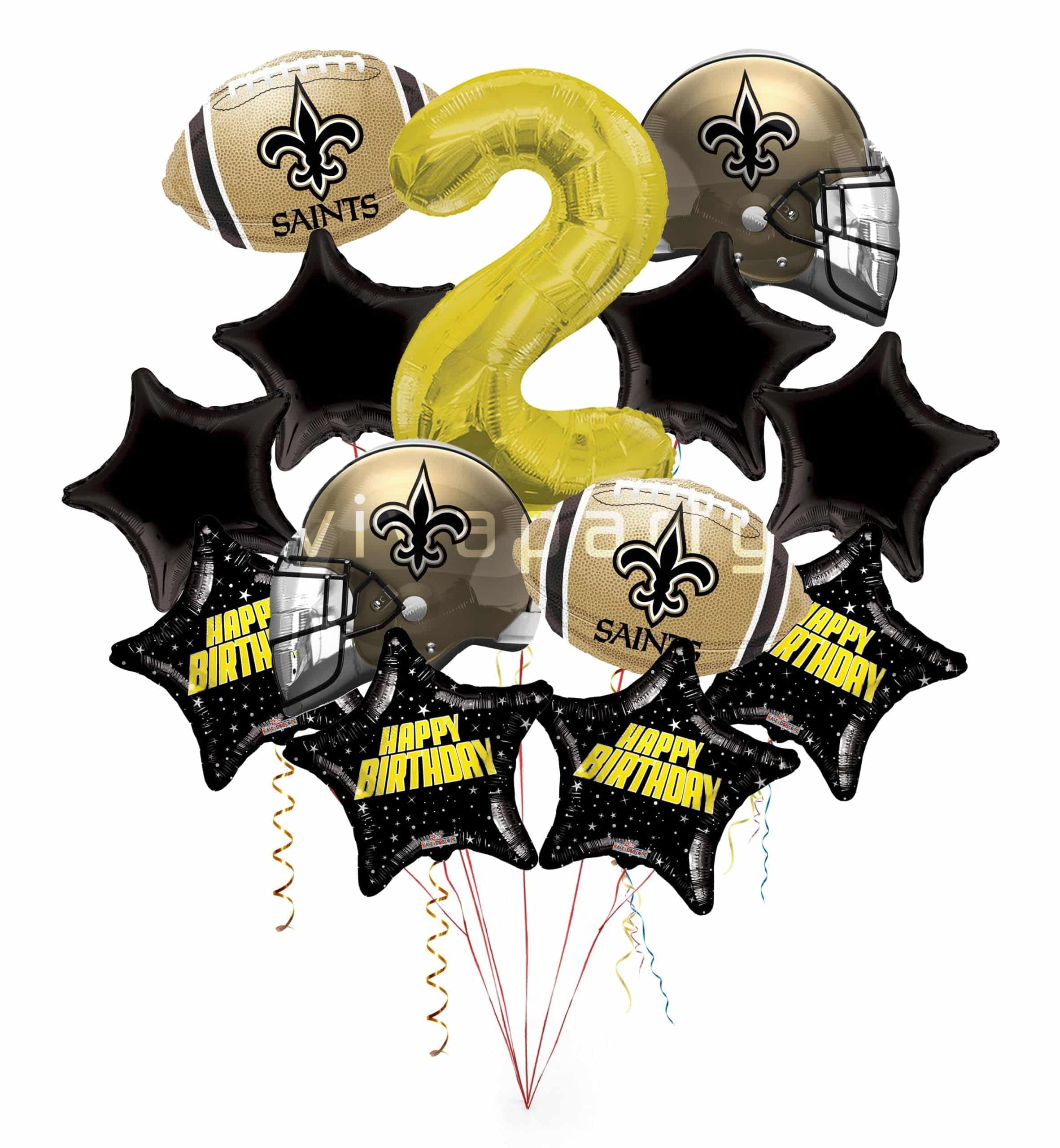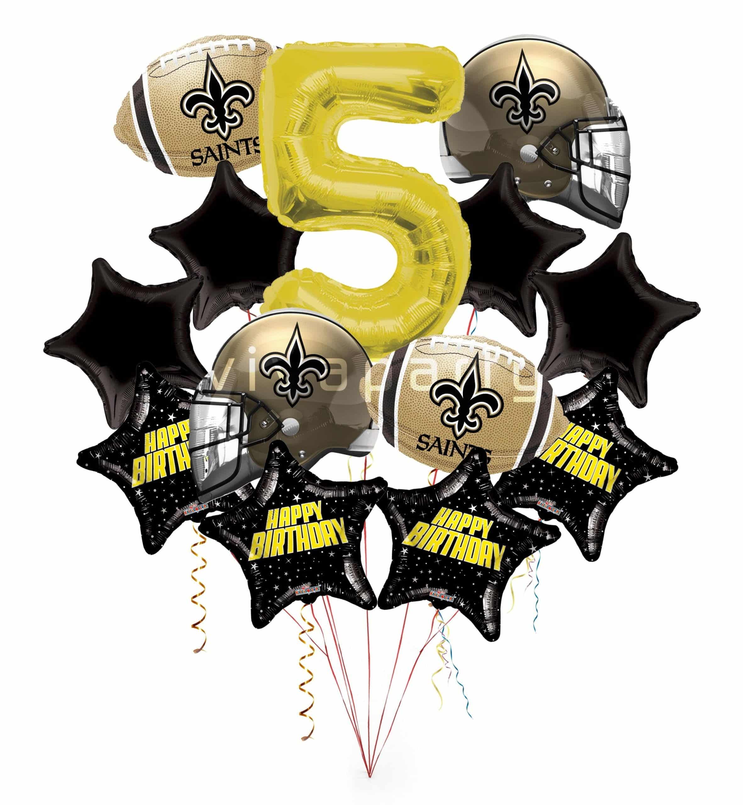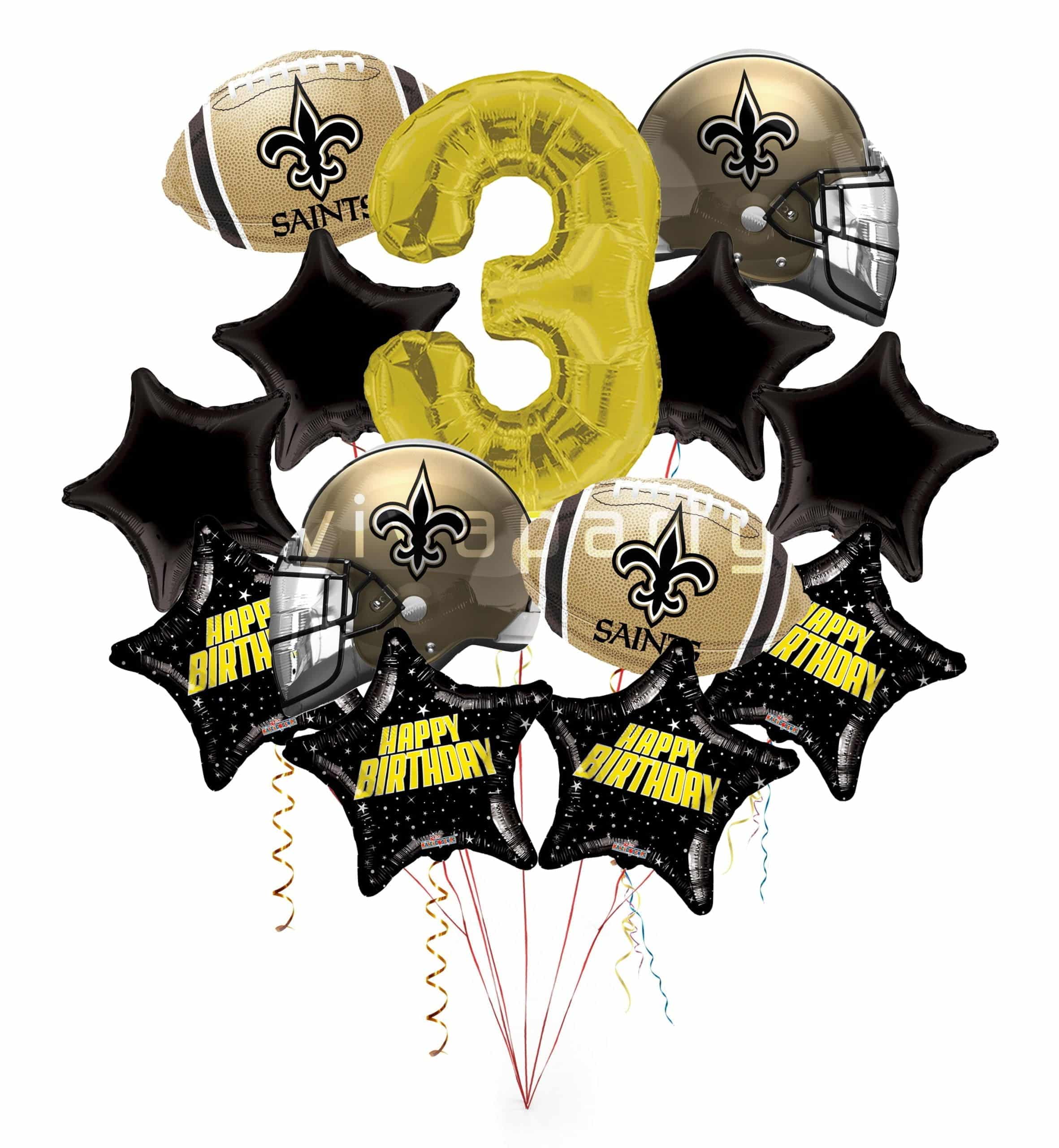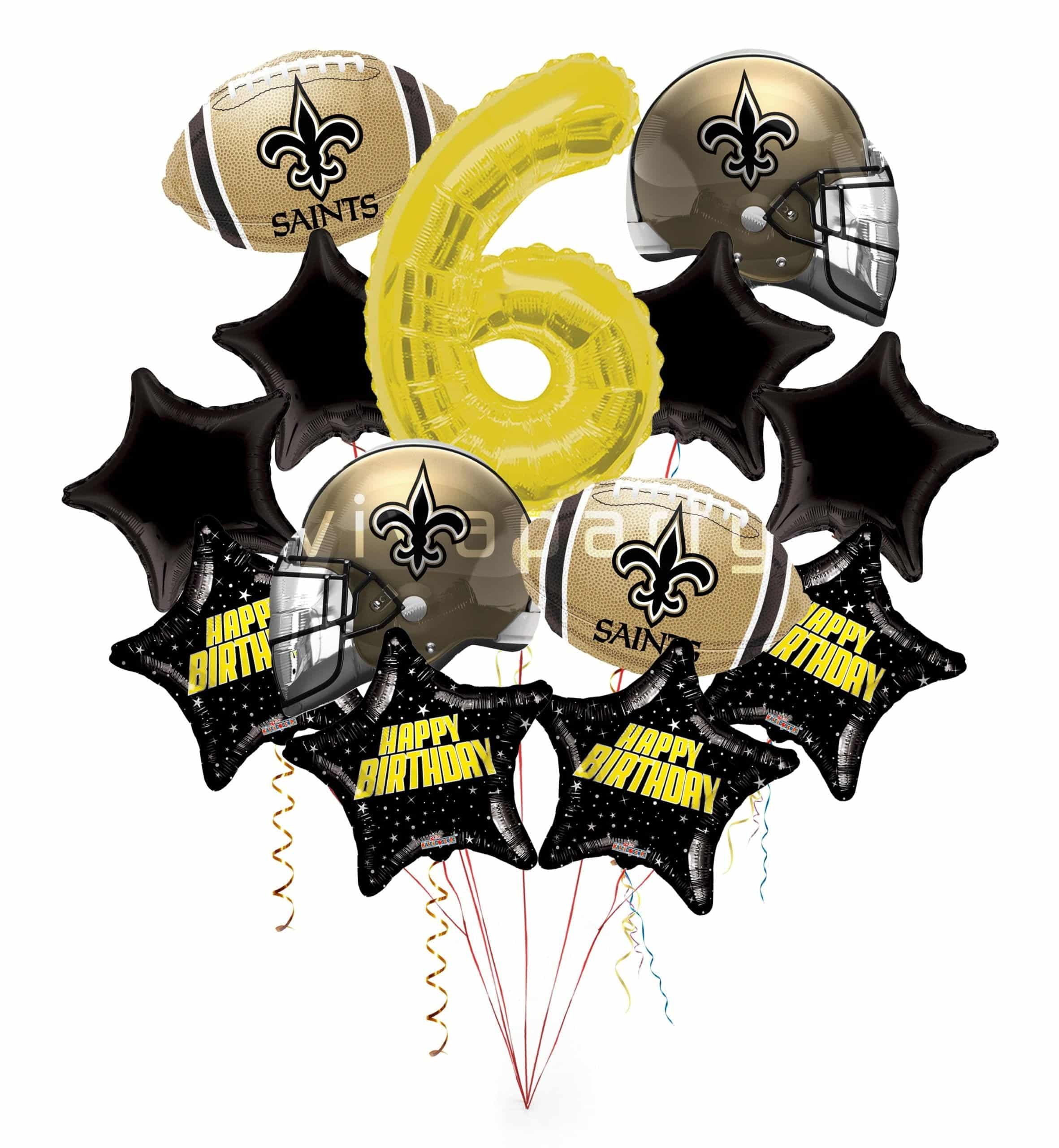 New Orleans Saints Happy Birthday Balloon Bouquet (13 Balloons)