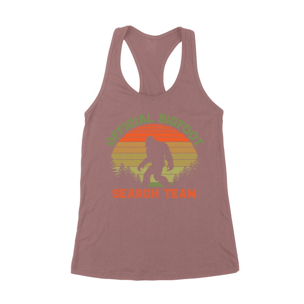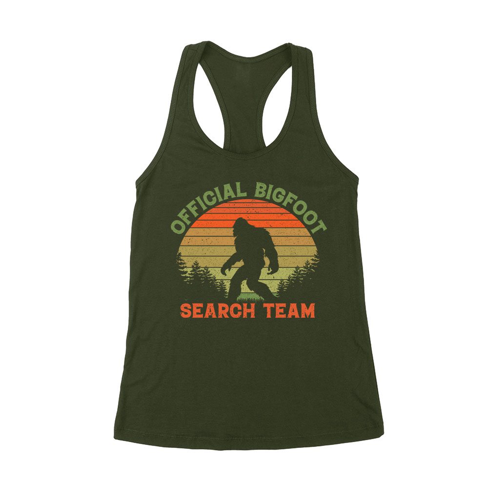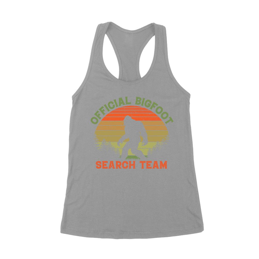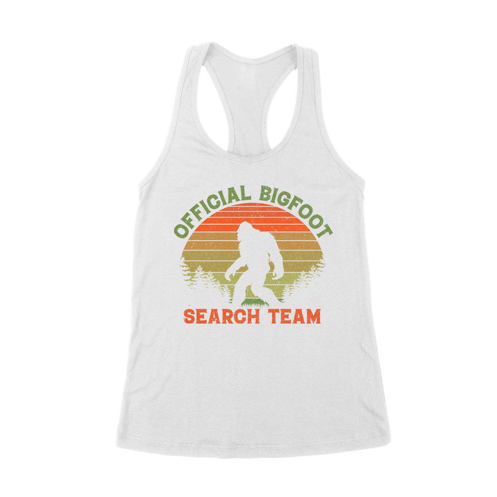 Official Bigfoot Search Team T-Shirt – Funny Sasquatch Hunter Tee Women’s Racerback Tank Top