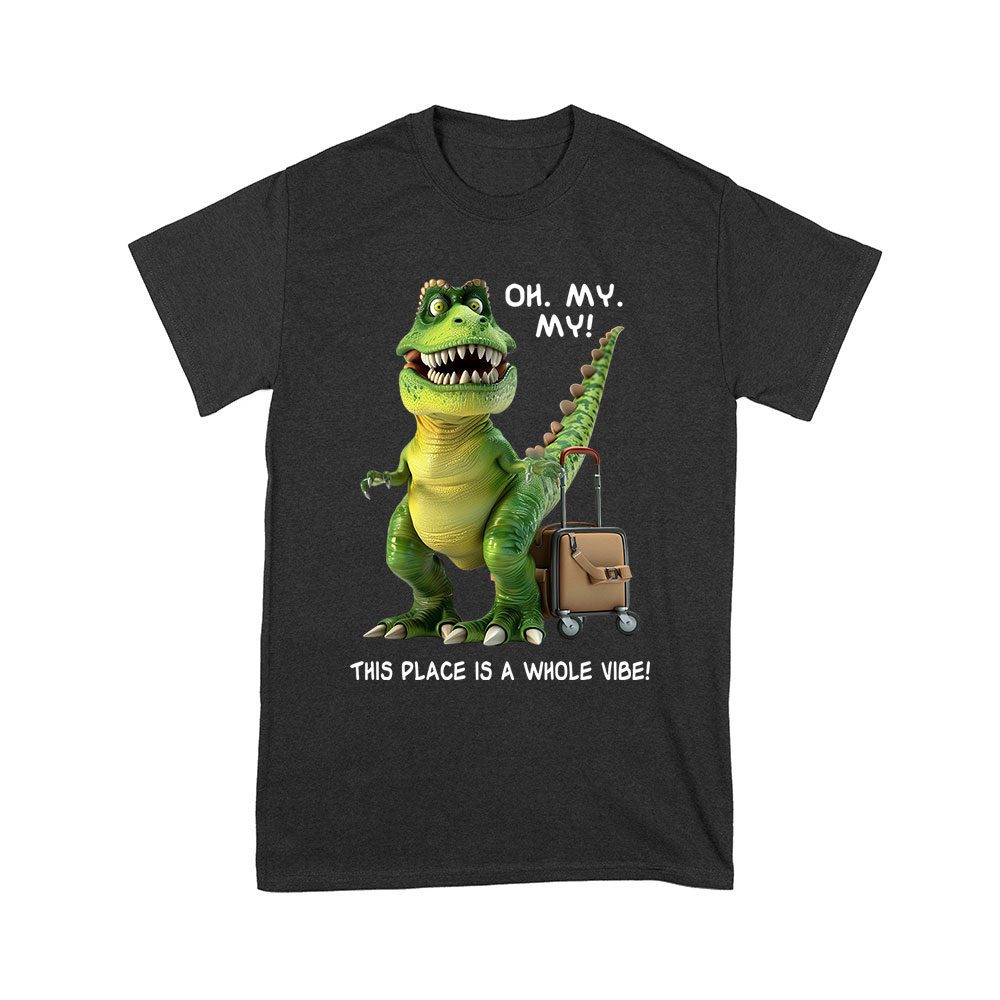 Oh my my, T-Rex travel shirt, adventure dinosaur tee, amazing place shirt, fun graphic design, suitcase dinosaur, travel theme apparel, quirky dinosaur shirt: