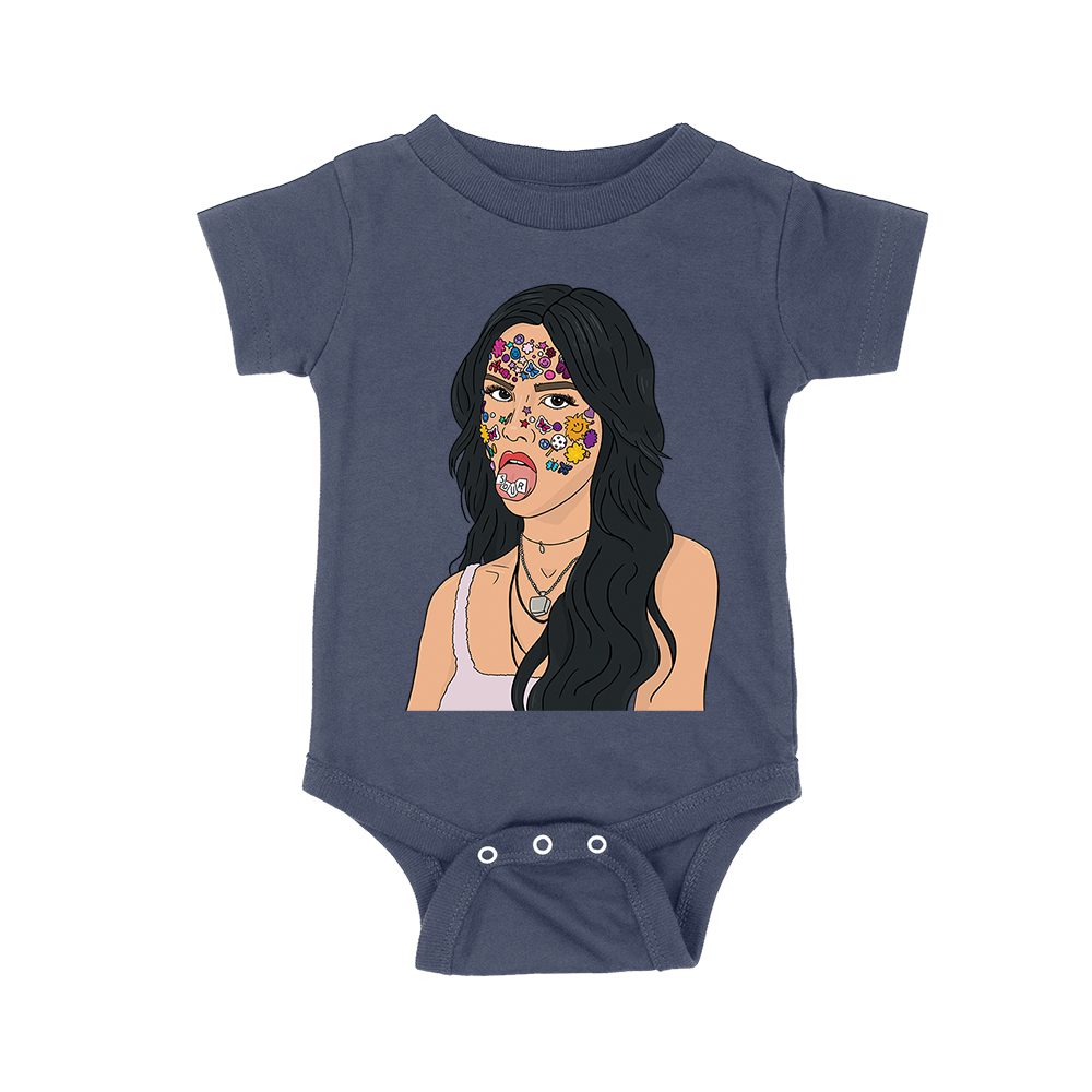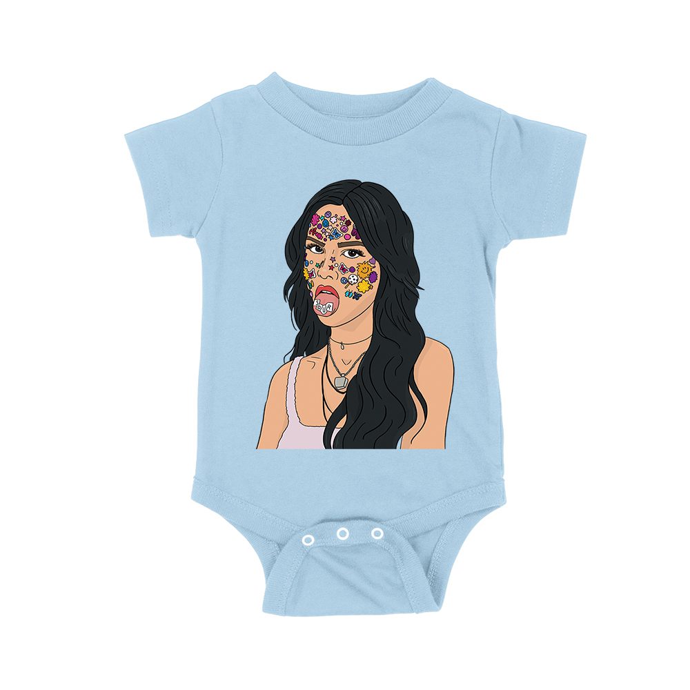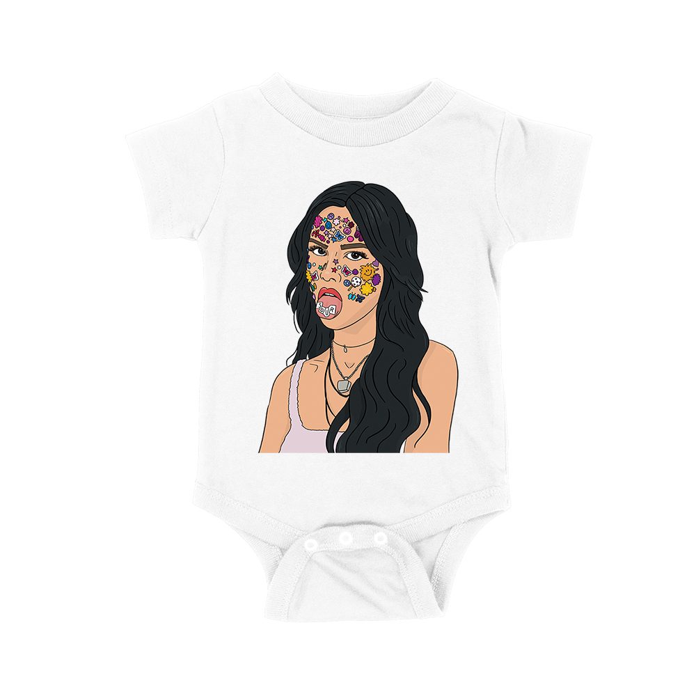 Olivia Rodrigo Cartoon Style T-Shirt with Face Stickers and Pop Expression Unisex Baby Jersey